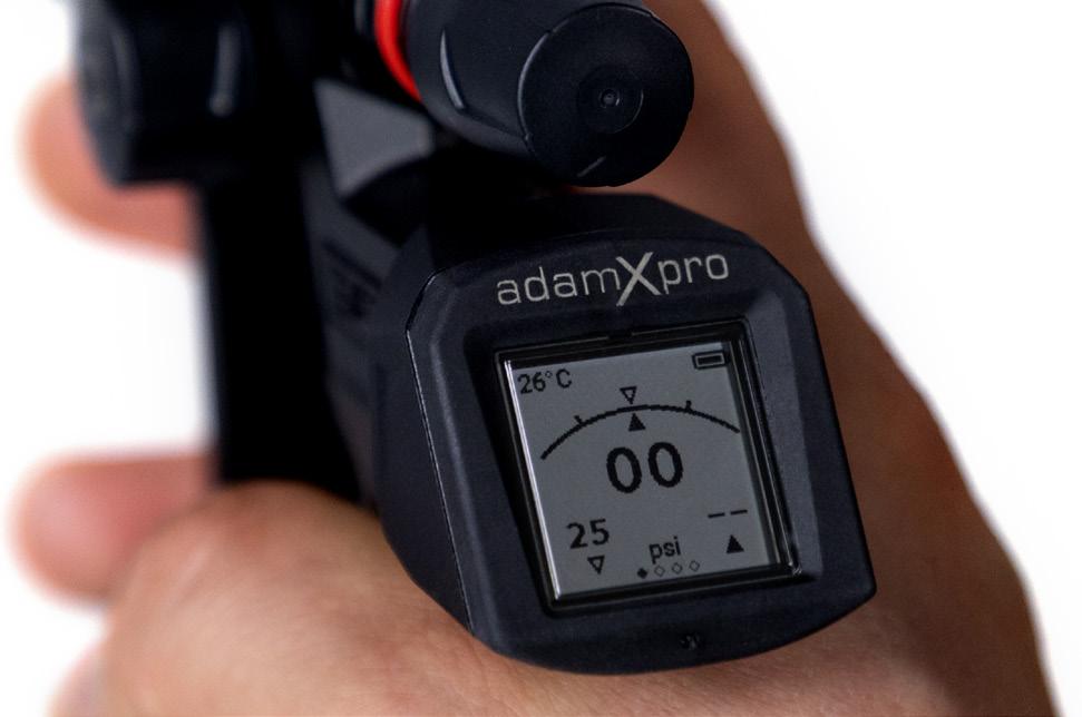 L’unité numérique adam X offre différentes fonctions numériques de base qui facilitent le quotidien du professionnel dans la cabine de peinture. Par exemple, la pression d’entrée est affichée en grand et de manière bien lisible ; il est nettement plus facile de bien régler la pression. L’affichage peut être converti de bar à psi. En outre, l’adam X indique la température ambiante – un paramètre important, d’autant plus qu’il mesure la température là où elle est importante : dans la cabine de peinture. Par ailleurs, l’adam X détecte la durée de fonctionnement et l’état de la pile. Pratique : l’affichage est commandé en tapotant deux fois, conforta-blement et en toute sécurité, même avec des gants.