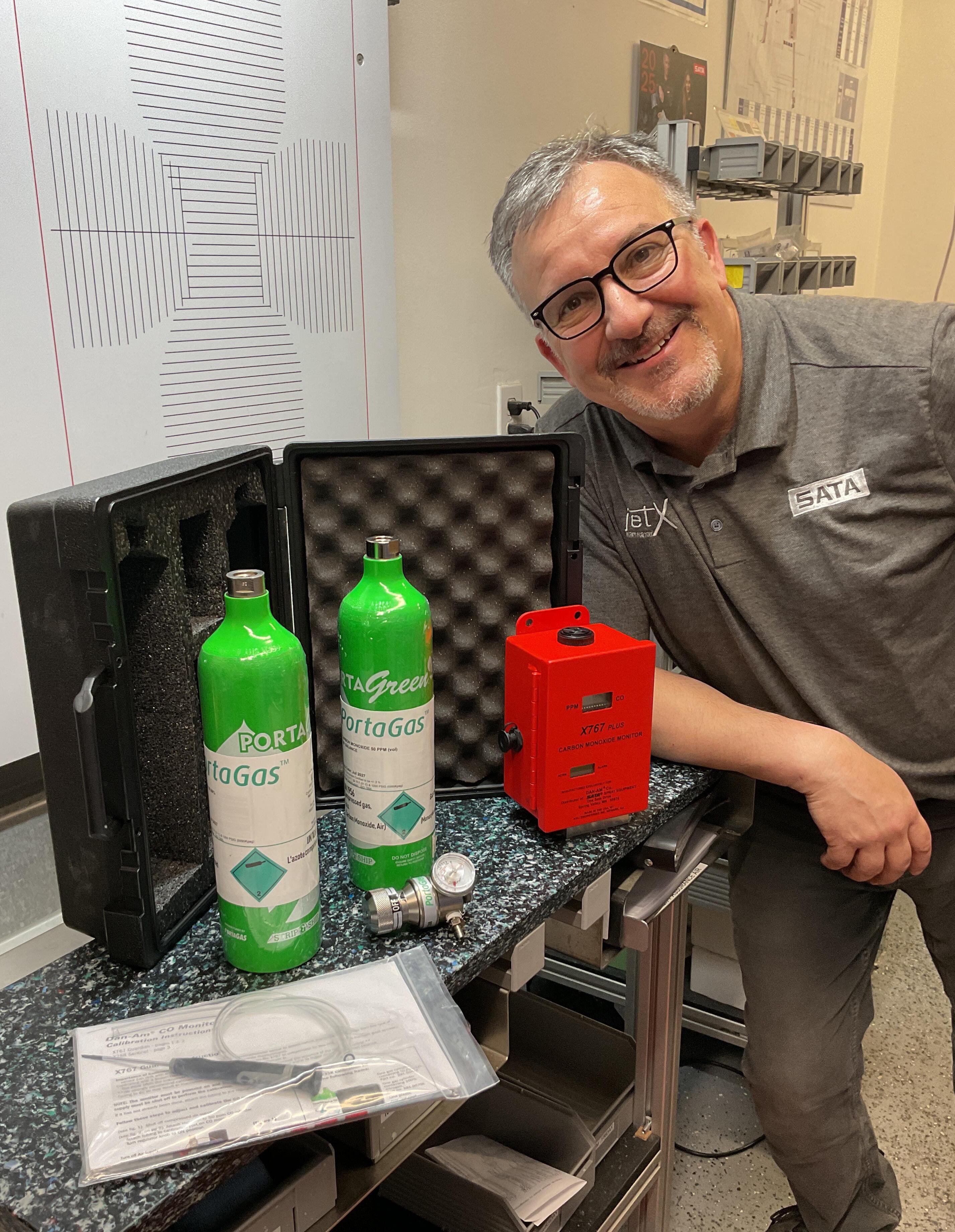 Our SATA three-stage filtration provides 100% clean, breathable air. However, there is a one final component necessary to protect the painter and to be CSA and National Standards compliant, and that is a Carbon Monoxide Monitor