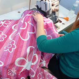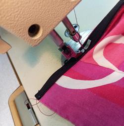 5. Sew waistband, zip and hem - Take your waistband (already folded lengthways) and pin to skirt, right side to right side and matching the raw edges. Make sure you have equal gathers around the circumference of the waist. Sew the waistband with the skirt, using a medium length stitch. Pin the zip into the 13cm seam allowance from the top of waistband, one side at a time. Use your zipper foot and sew in place. Do the same on the other side to complete the zip. Fold top tags of zip down and top stitch. For the hem, use an overlocker or Z stitch on a normal sewing machine. Press a 1cm hem and top stitch or hand sew. Wear it with confidence - No one will believe this used to be a duvet cover!