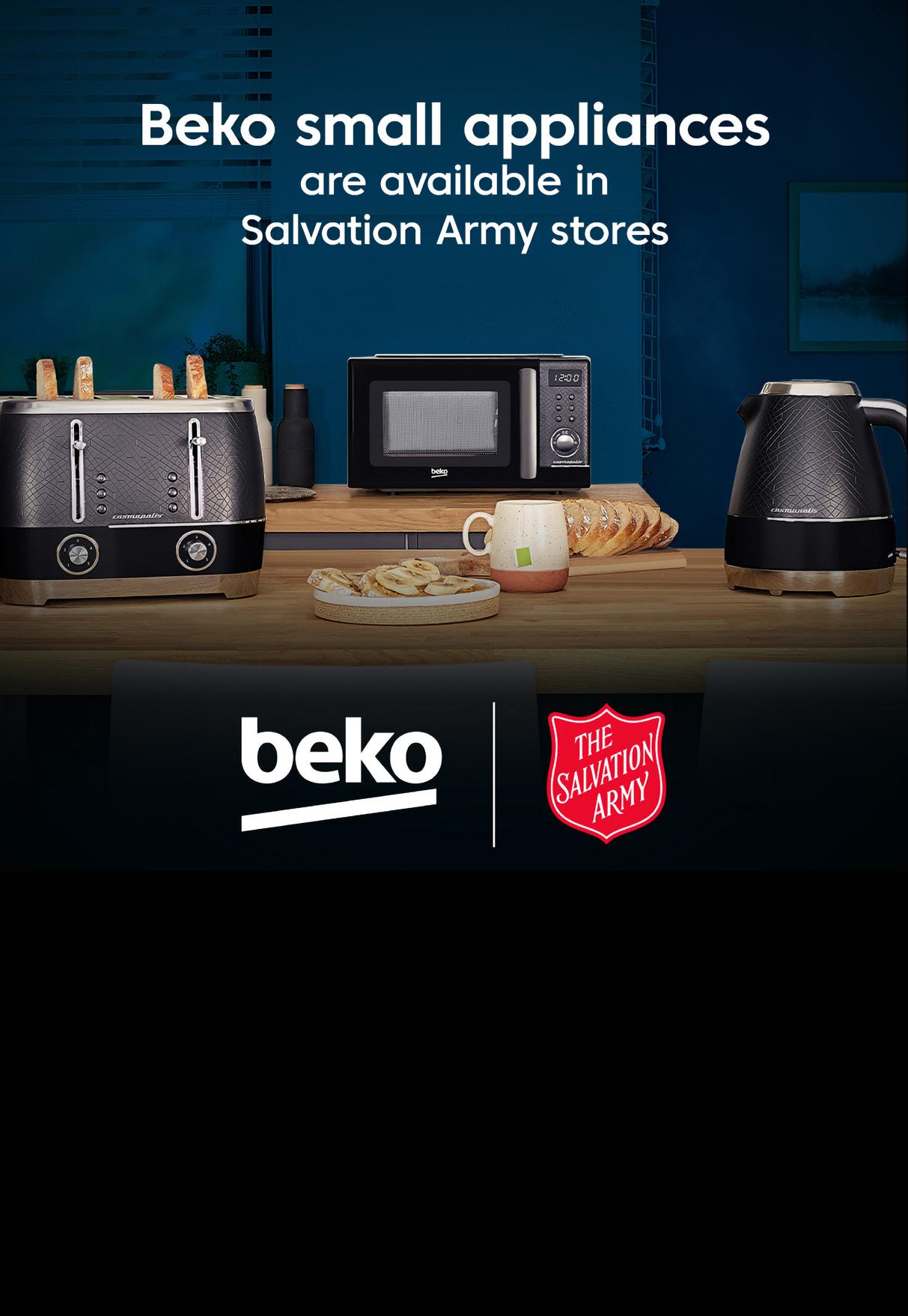 So, next time you need a toaster, vacuum cleaner, or microwave oven, pop into your local Salvation Army charity shop first and browse our selection of Beko appliances.