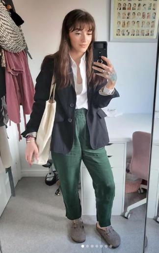 “I would say about 80 percent of my wardrobe is preloved. I love the thrill of charity shopping when you find something really interesting and it’s in your size! I particularly like my local Salvation Army shop because everything is carefully laid out and super clean. The white blouse I am wearing in this picture was like new and it’s a real staple in my wardrobe. I also appreciate that the prices at The Salvation Army, they are very reasonable compared to other charity shops. Plus, my local Salvation Army shop (Altrincham) plays the coolest tunes!“