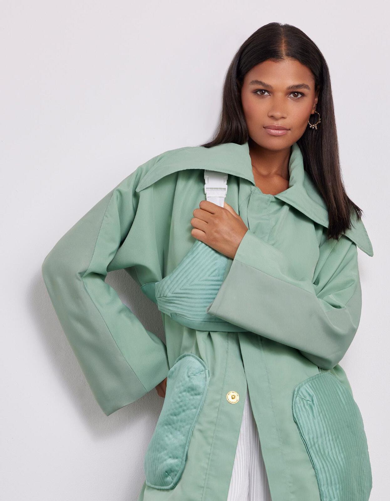 Front cover model wears coat repurposed from donated textiles as part of our collaboration with Winchester School of Art.