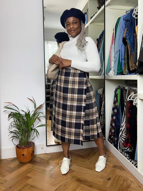 “Hi, I’m Dionne. I grew up practicing and enjoying giving new life to styling old pieces from hand-me-down clothing from friends and relatives. This means sustainable outfits have always been on rotation in my wardrobe. I am inspired by vintage style icons such as Diana Ross, Donna Summer and Beverly Johnson (to name a few), so I am particularly drawn to vintage pieces when browsing the rails of charity shops. With that being said, you could imagine my delight when I found this unique pair of white flats at The Salvation Army charity shop one day on my lunch time wander. I am yet to see anyone else with another pair, which is one of the delights I find in shopping vintage second-hand. 90% of my wardrobe has been acquired from charity shops, as I find unique, quality, vintage pieces that I get to breathe new life into and style in my own way.”