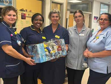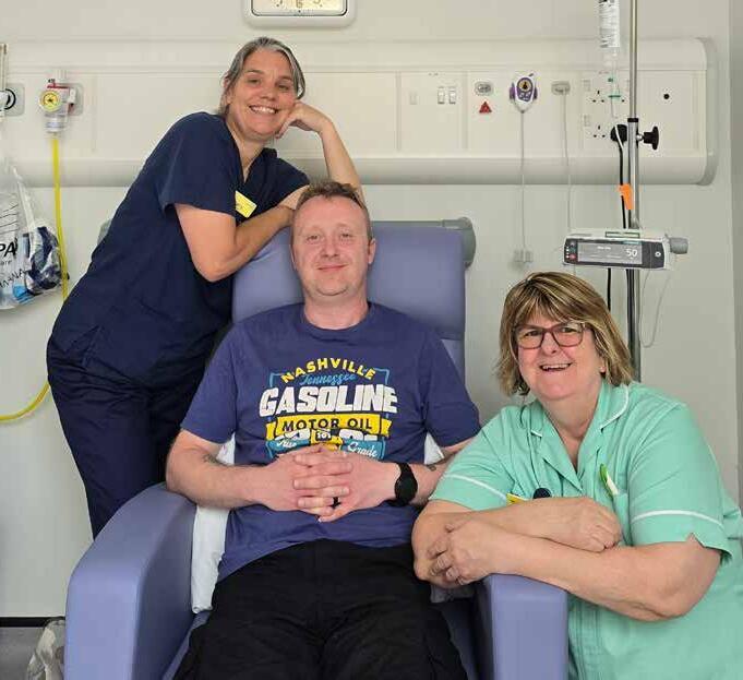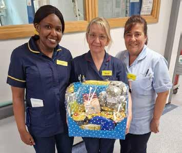 Pictured is Mark with Staff Nurse Tracy Lote and HCA Jan Griffiths who work on the medical day ward.
