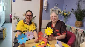 Patient Jean and another patient used the space to enjoy afternoon tea out of a china cup and make some paper flowers which she thought was great for keeping her hands moving and meeting new people, as quite a few people stopped to have a chat as they passed by.