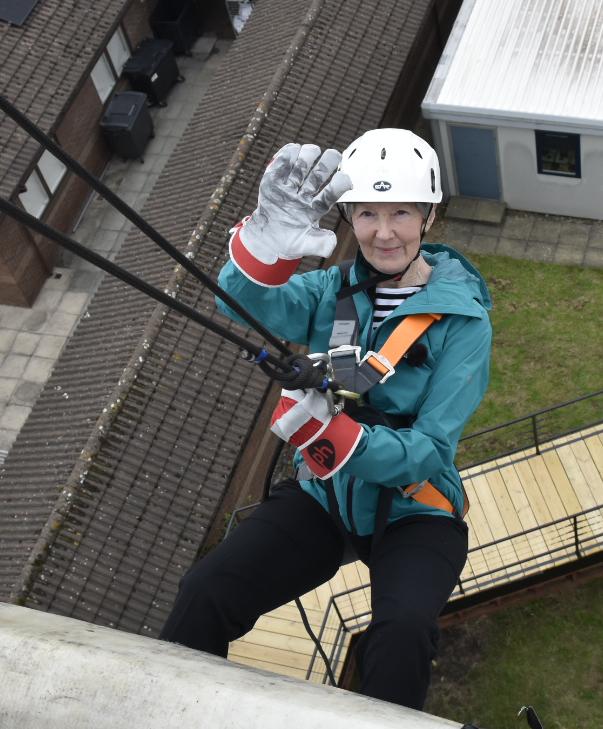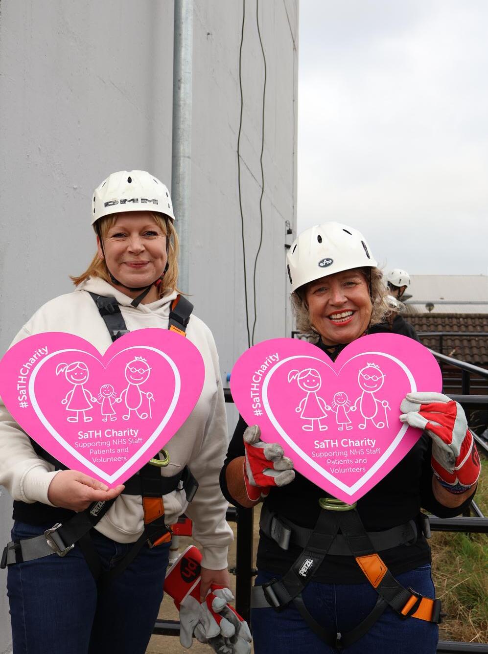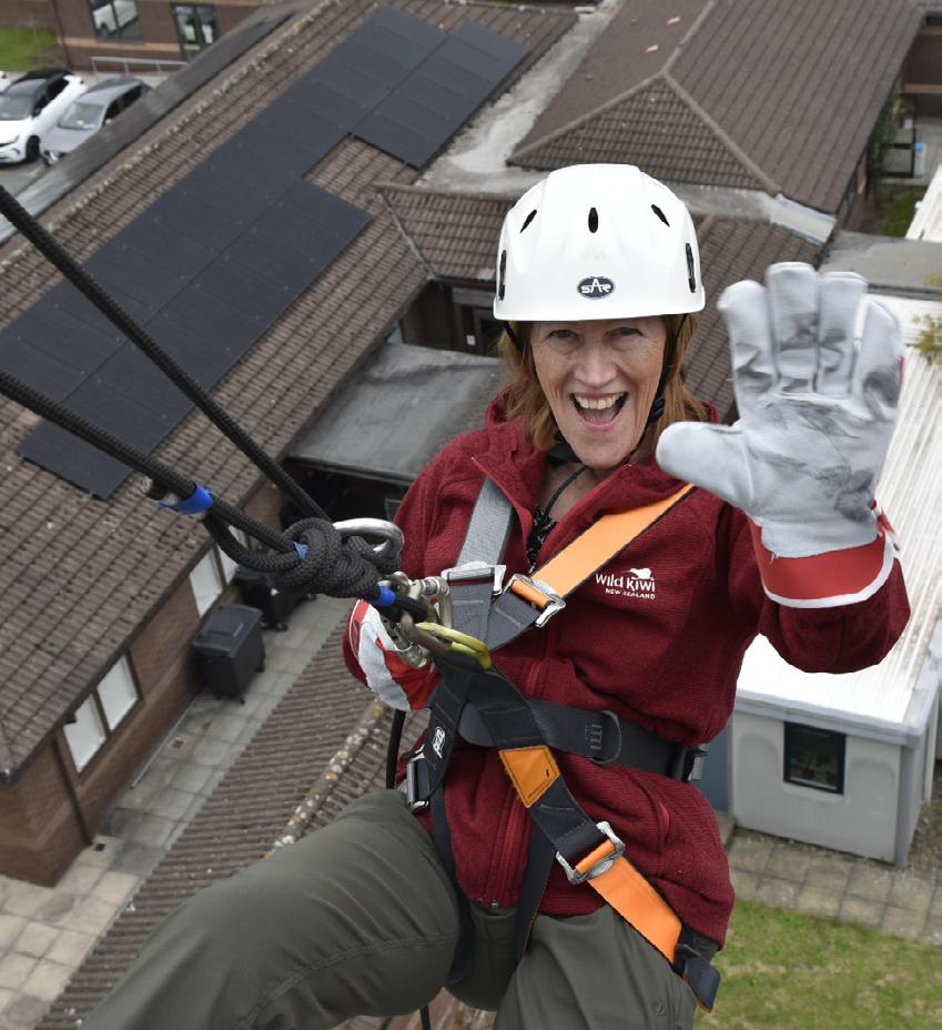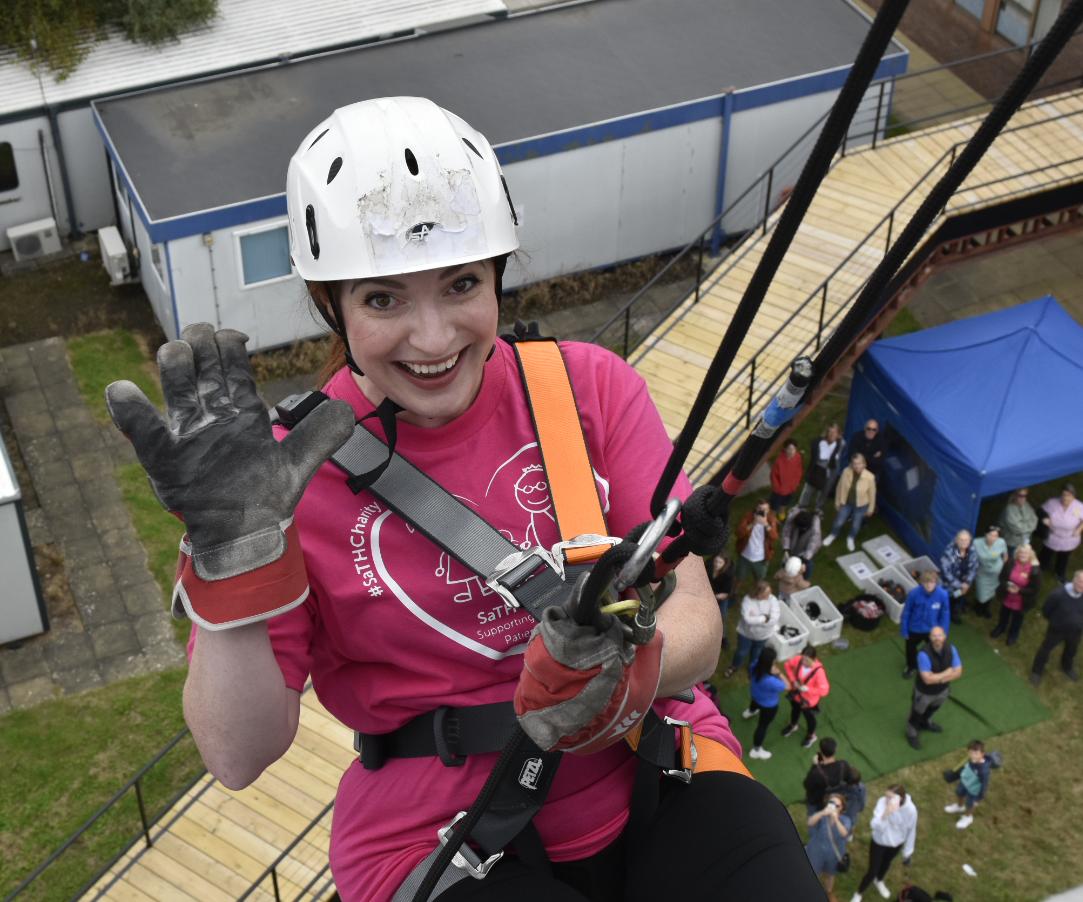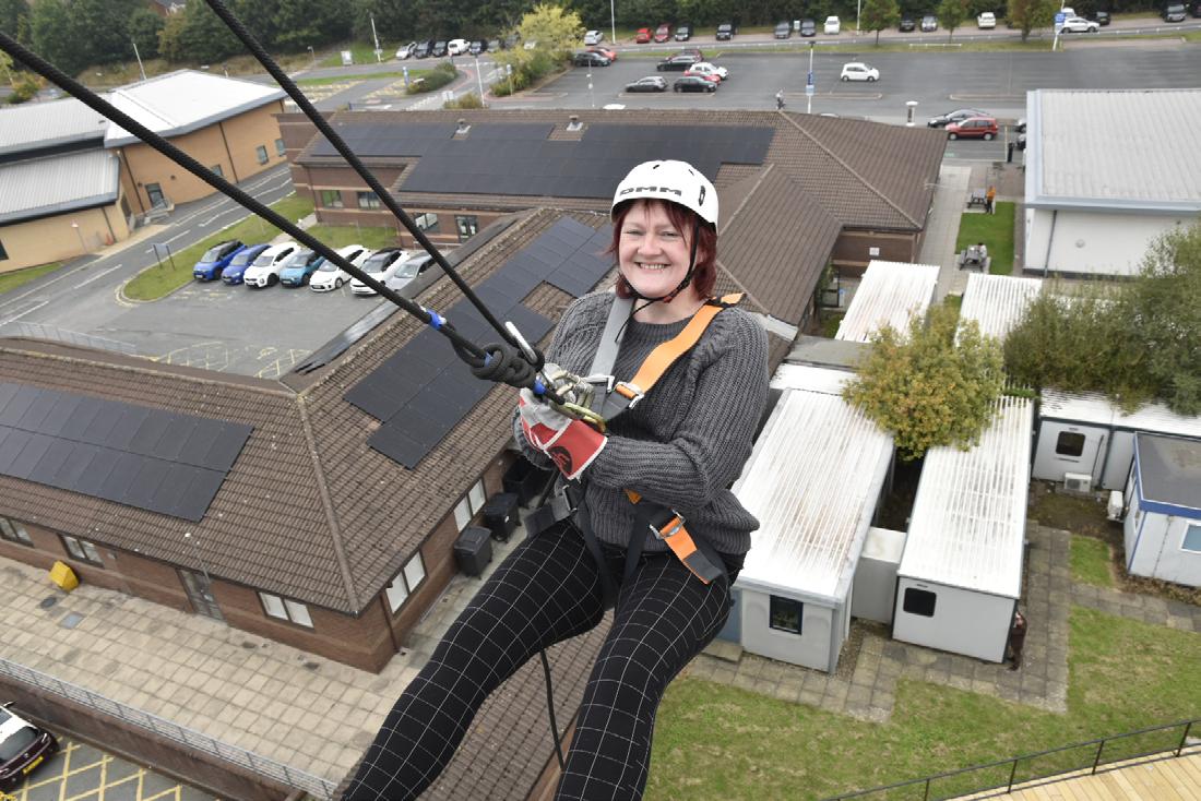 There was a carnival atmosphere when 39 hospital colleagues and supporters abseiled down the side of the building.
