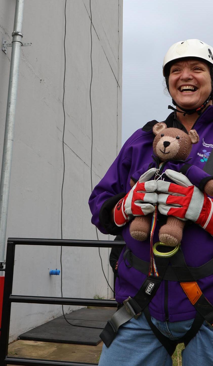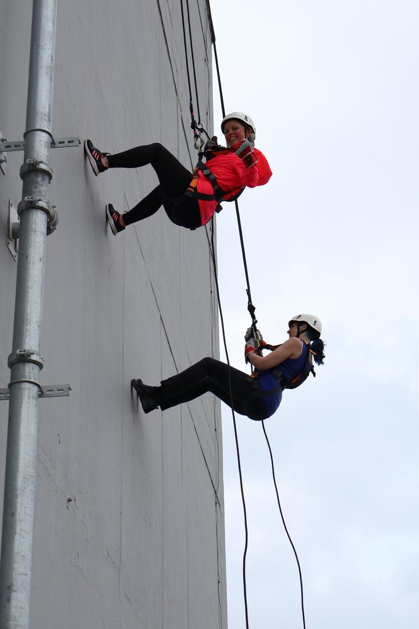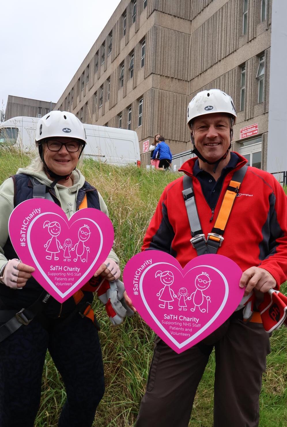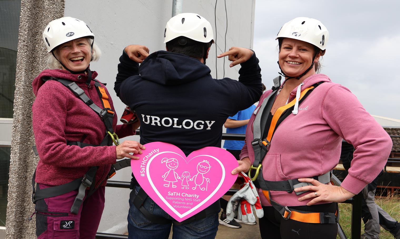 There was a carnival atmosphere when 39 hospital colleagues and supporters abseiled down the side of the building.