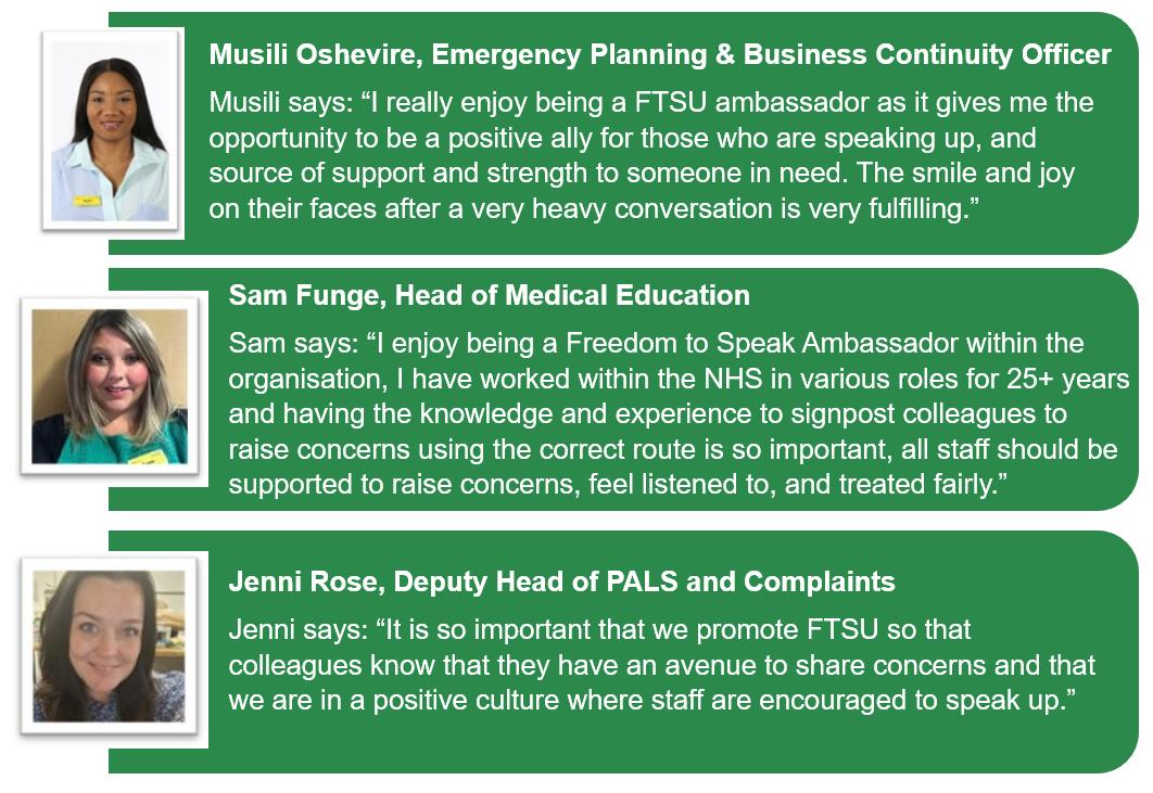 We are using Speak Up Month to promote the role of the FTSU ambassadors and enhancing this team by recruiting more. We are looking for ambassadors from all over the organisation, at every level.