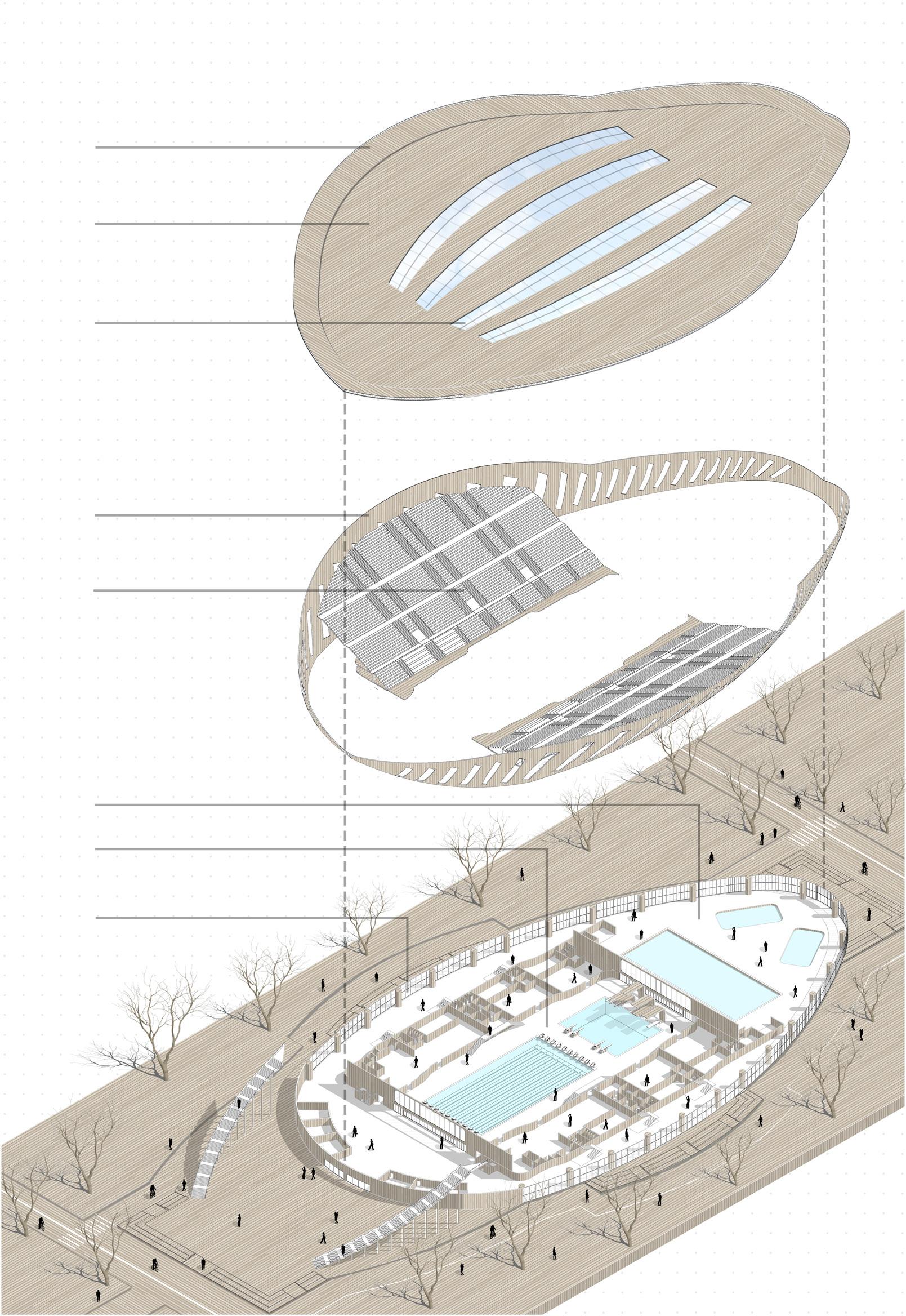 The Water's Journey concept for the Olympic aquatic center is a design approach that draws inspiration from the natural journey of water, from its source in the mountains to its ultimate destination in the ocean. This concept is not only a metaphor for the physical journey of water but also symbolizes the journey of a swimmer, from the early stages of training to the pinnacle of competition.