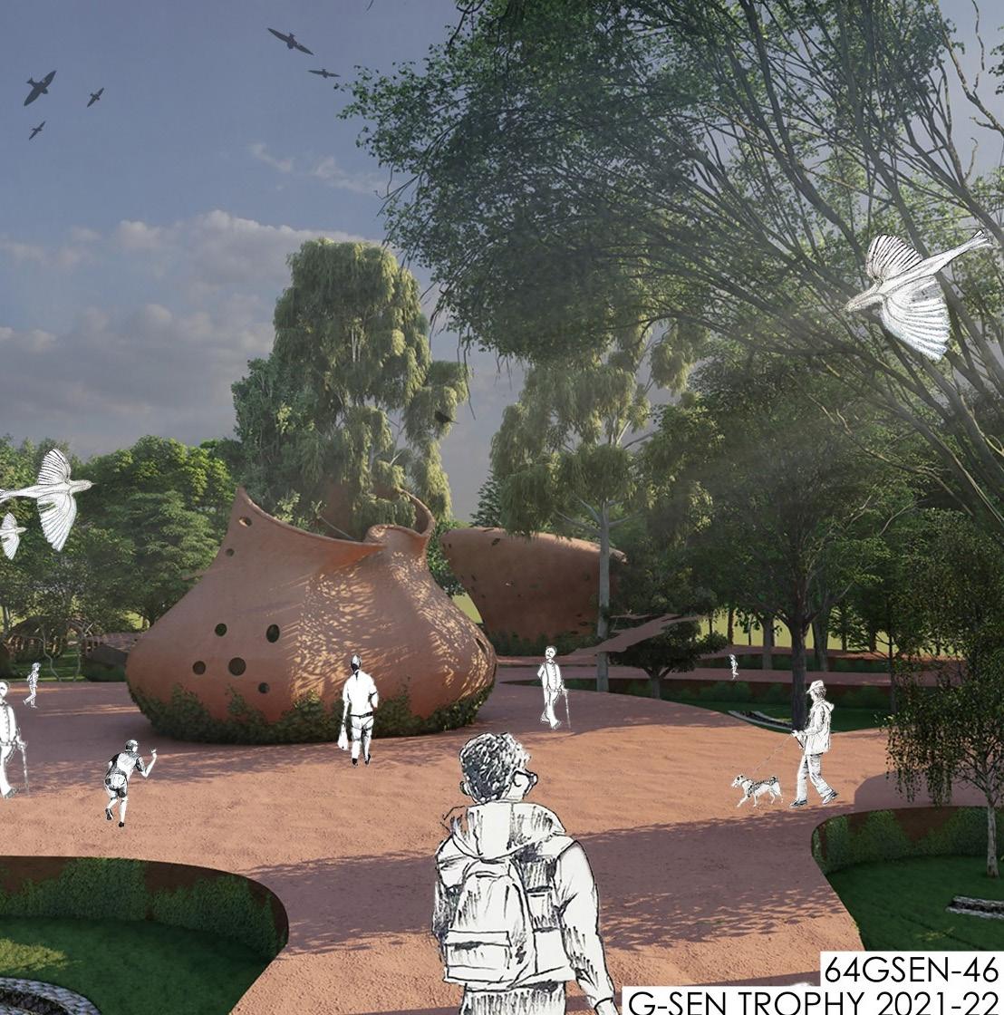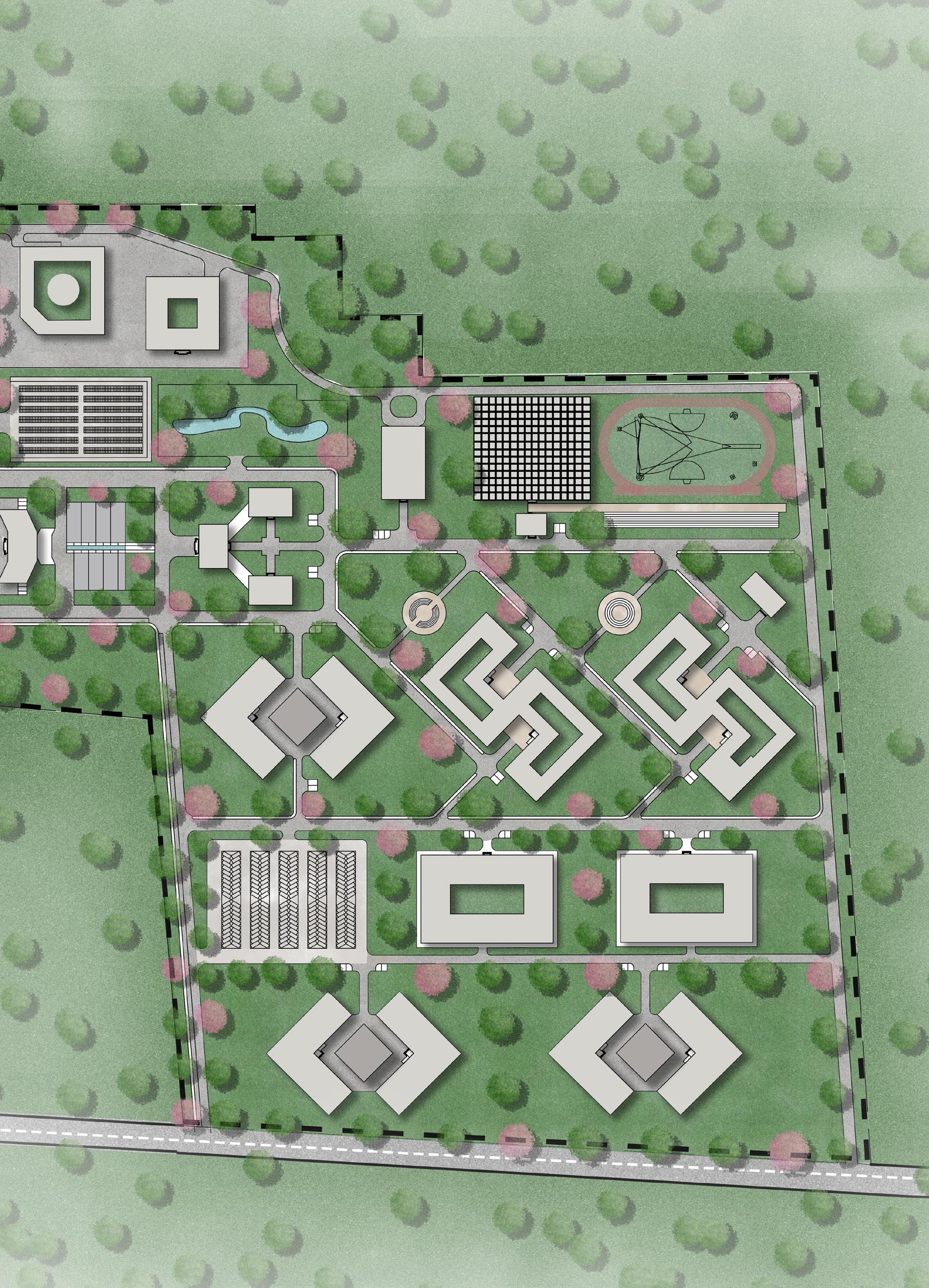 The "Campus Planning NIT" proposal in Patna, Bihar, India, is a visionary project designed to create a holistic and enriching educational environment. The campus will encompass six academic departments, a state-of-the-art library, staff housing, indoor and outdoor stadiums, and extensive recreational facilities. The design is deeply rooted in the principles of biophilic design, emphasizing the integration of natural elements to enhance learning and well-being.