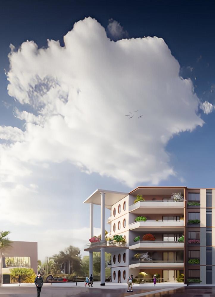 Idea behind the design of these 3 luxury apartment is to create an interactive space between nature and human, The apartments are designed in a way each and every flat receive natural day light and cool breeze from the balconies, every angle in the apartment designed to reduce consumption of electricity where it follows sustainable design, at every 3 floors there is a terrace garden where main idea is to provide air purifying plants which helps in maintaining clean space and also acts as interactive space