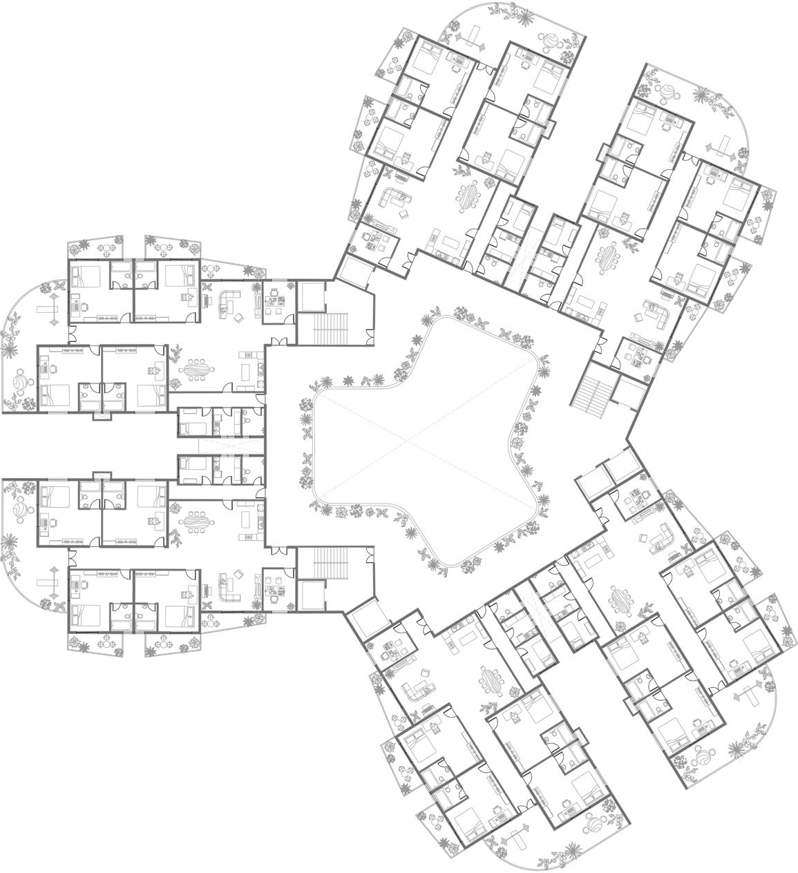 Design aims to provide luxury condos for nearly 4 families along with other amenities, The proposed scheme consists of three types of units