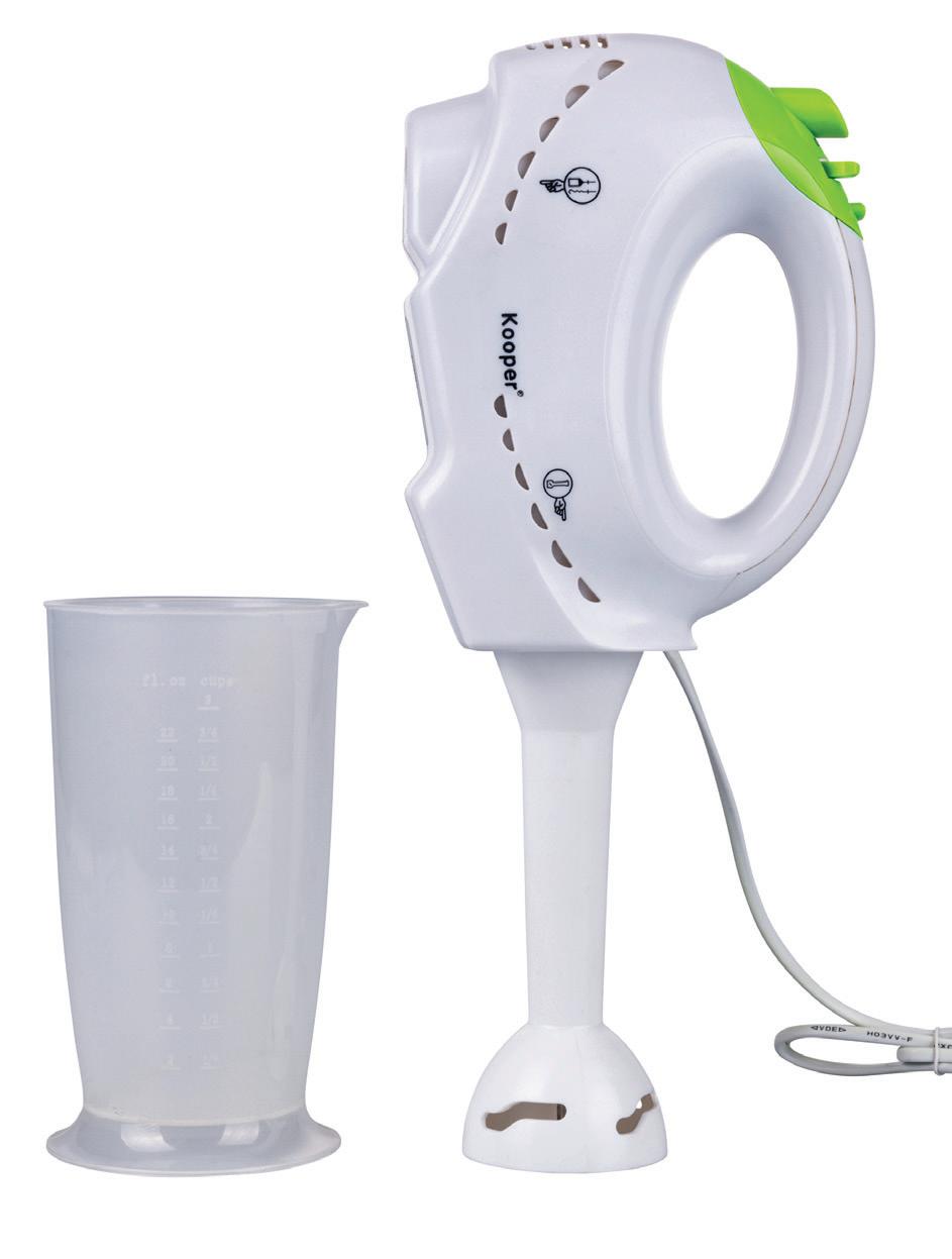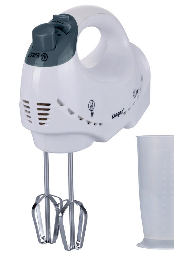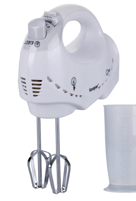 2-in-1 multi-purpose beater • 2 dough hooks 2 whisks for whipping • 1 immersion blender • 5 speeds • Turbo function • Accessory ejector button •600 ml beaker • Cable length: l. 98 cm