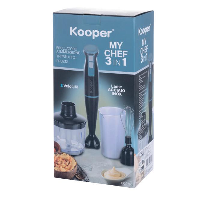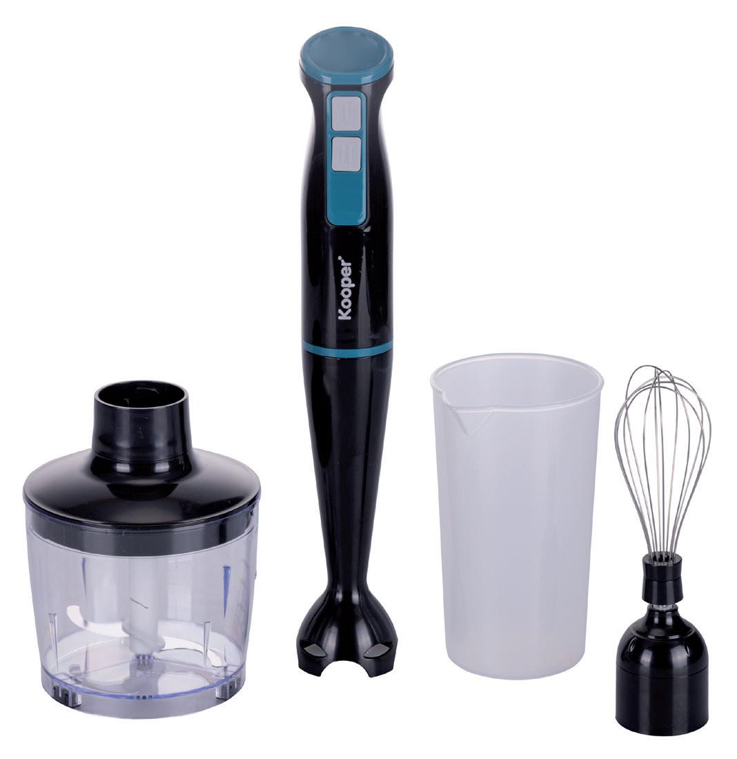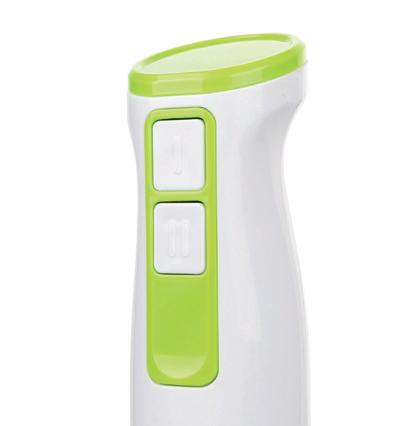 3 funzioni: Frullatore ad immersione • Mini tritatutto • Frusta sbattitore • 2 velocità
