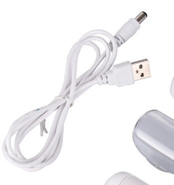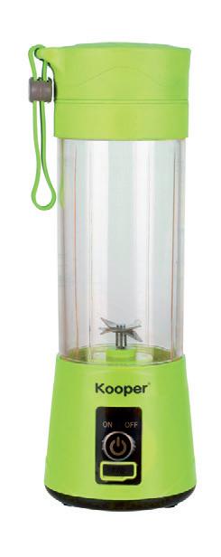 Materials: polypropylene (PP) lid; polycarbonate (PC) jug; ABS motor base and fittings, silicone gasket • 6 stainless steel blades • Rechargeable with USB cable included • Equipped with carrying strap • On/off touch button • With operation LED • Equipped with safety stop function • Capacity 380 ml • USB-micro usb cable length: 80 cm • Power: 15 W