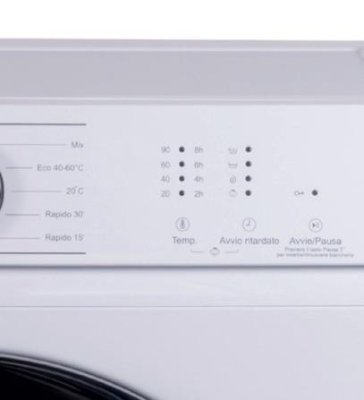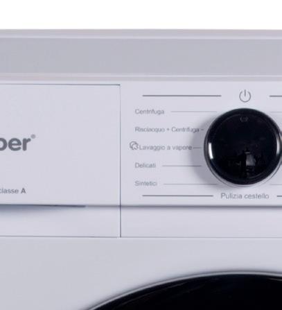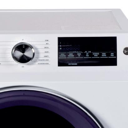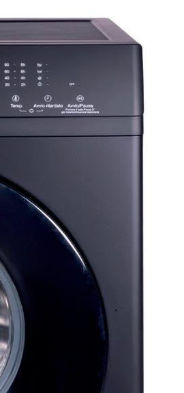 • Cestello in acciaio inox 430 • Apertura verso sinistra • Carico frontale • Capacità di carico: 9 Kg • Classe E • Display digitale • 3 impostazioni di livello di extra asciugatura