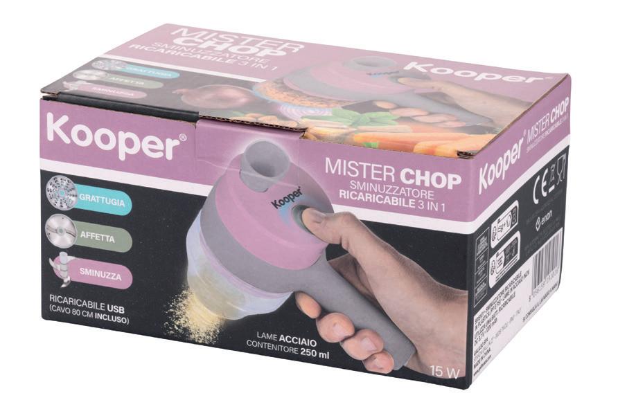 Capacità mini tritatutto: 500 ml • Bicchiere graduato 600 ml • Frusta in ABS e acciaio inox Bassa rumorosità • Potenza: 600 W • Lunghezza cavo 120 cm