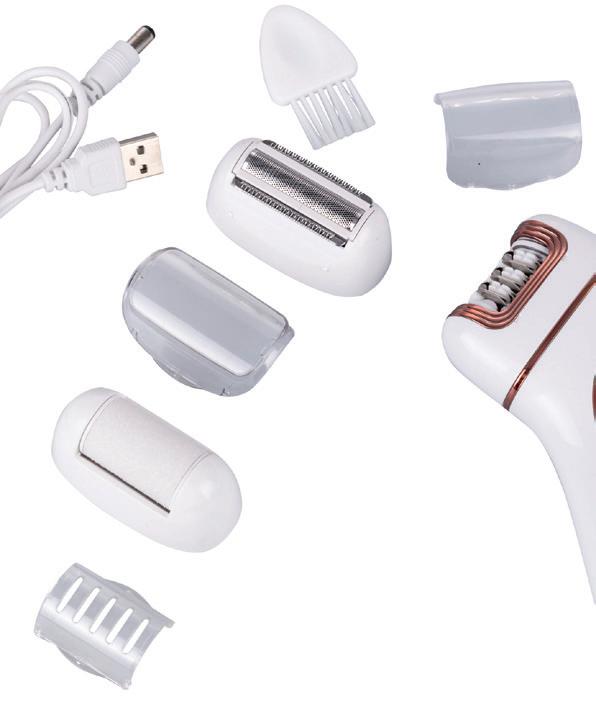 Con ricarica USB • Scocca in ABS e acciaio inox • Impugnatura soft touch • 2 lame in acciaio inox • Barra inferiore smontabile
