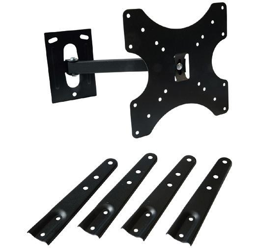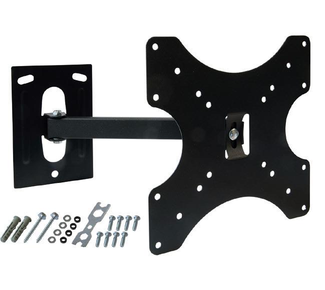 Made of iron • Designed for Led/Plasma/Lcd screens • Distance from the wall: up to 26 cm • Horizontal angle adjustment: +/-90° • Vertical angle adjustment: +/20° • VESA • Mounting kit included