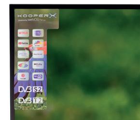 Bezel-less full screen design• Galvanized steel back shell • ABS support feet • Liquid crystal display • Ultra HD Display • Reception: DVB-T2/S2 • Screen ratio: 16:9 • WiFi • Wireless connection • Input: 110-240V~50/60Hz