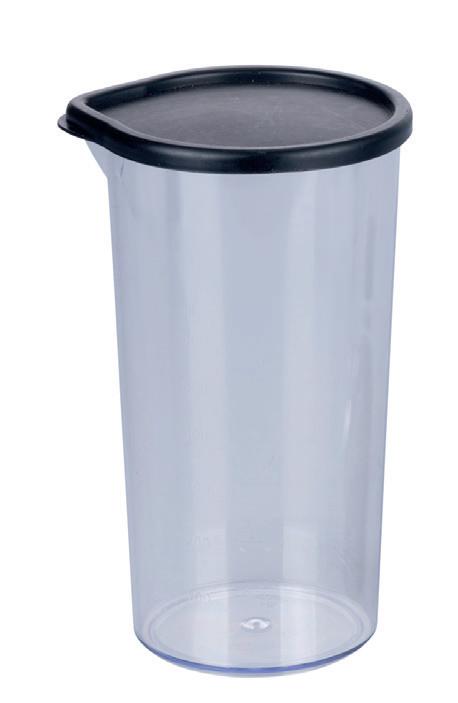 4 speeds + Pulse function • 4 stainless steel blades • Plastic measuring jug (AS) with side handle • Plastic beaker (AS) with dispenser • Large plastic base (PP) Mixing spatula made of plastic (PP) • Non-slip suction feet • brocca, coperchio, spatola, lavabile in lavastoviglie • Wattage: 350 W 5921373