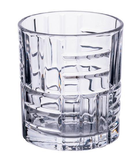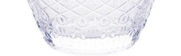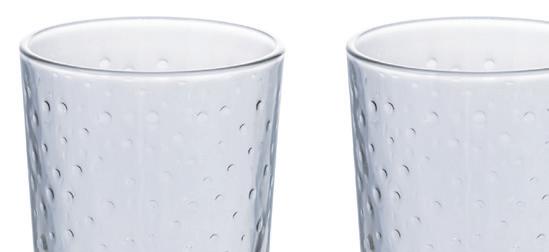 Tre pezzi coordinati per completare il servizio: bicchieri acqua in vetro trasparente, con di erenti texture.