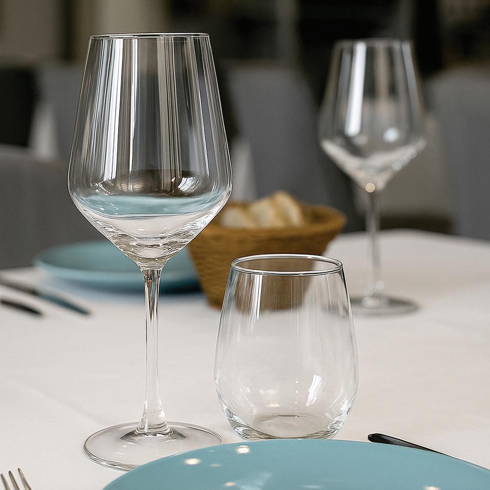 2 bicchieri, trasparenti, lisci o con lavorazioni a rilievo che donano carattere alla tavola.