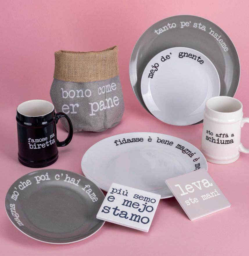 VILLA D’ESTE HOME TIVOLI 1996 È DA SEMPRE FAN DELLE PAROLE E DELLA LORO FORZA ESPRESSIVA. È PER QUESTO CHE NON HA SAPUTO RESISTERE A , UN SUSSEGUIRSI DI ROMANITÀ DURA E PURA, IN MOLTEPLICI FORMATI DAVVERO SPECIALI: TAZZINE, BARATTOLI, PRESINE, PIATTINI E TUTTI QUEGLI OGGETTI CHE A VEDERLI ROMANIZZATI CI FARANNO ESCLAMARE: MA CHE DAVERO!