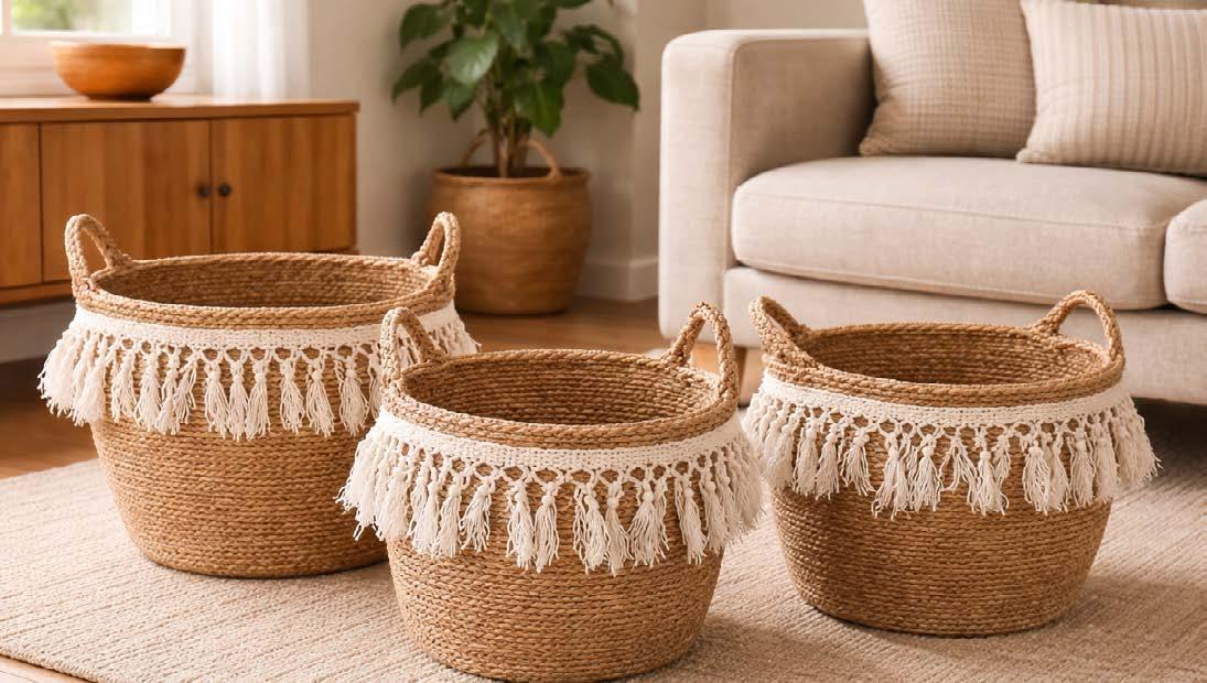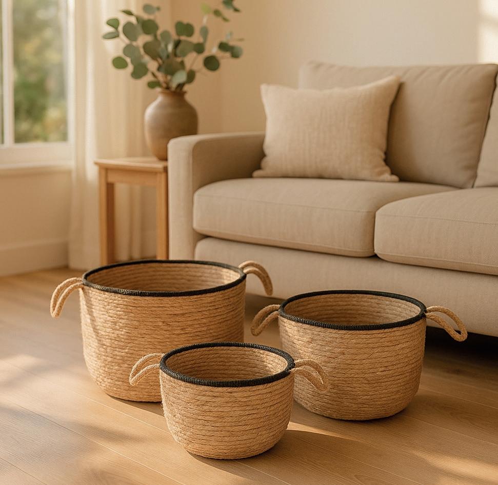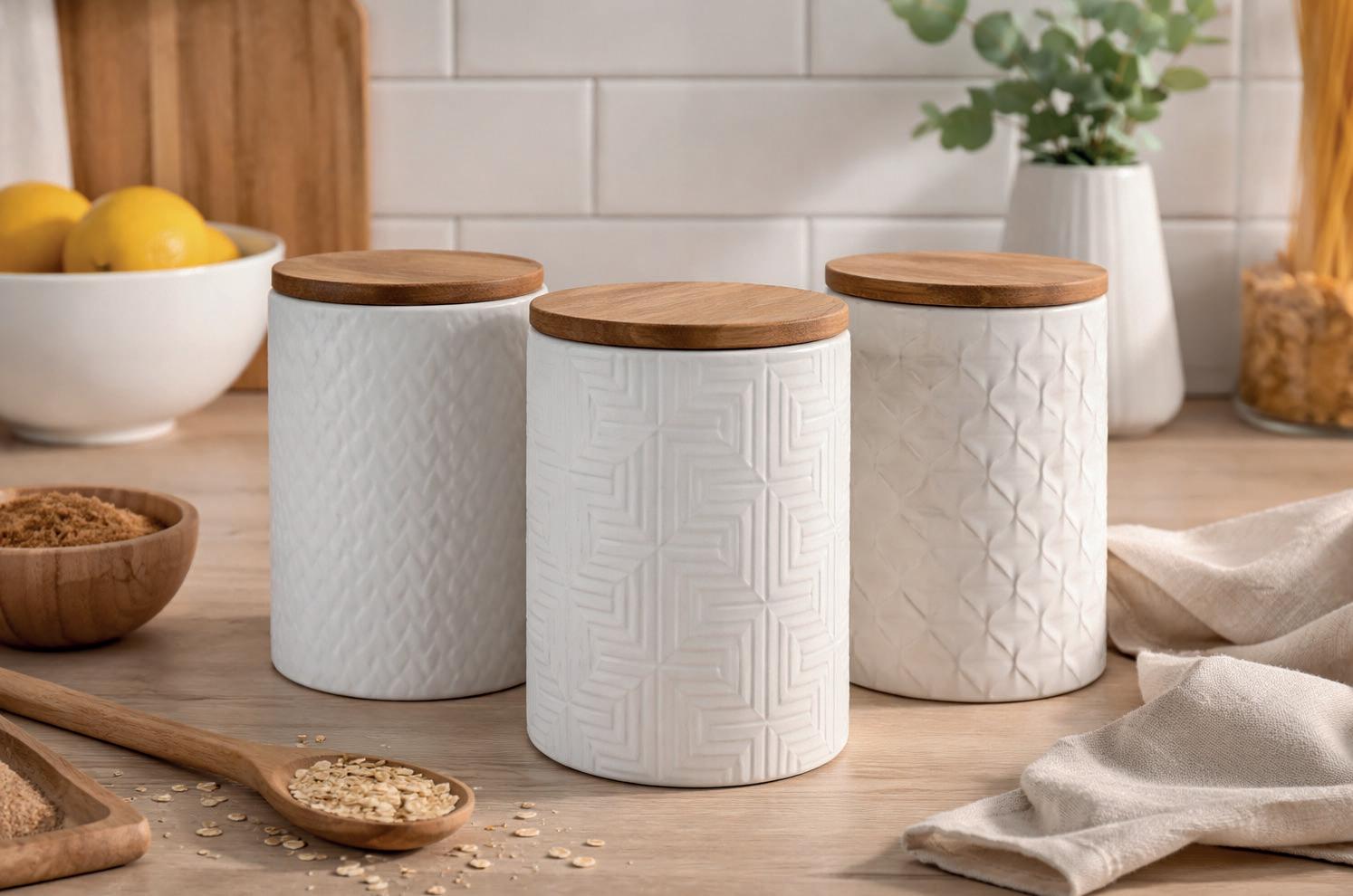 NEWACQUERELLO SET OF 3 JARS CERAM/BAMBOO