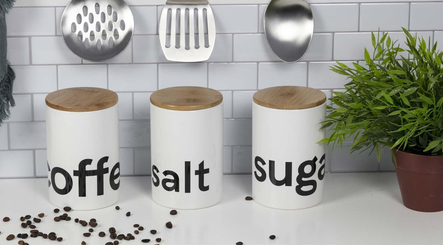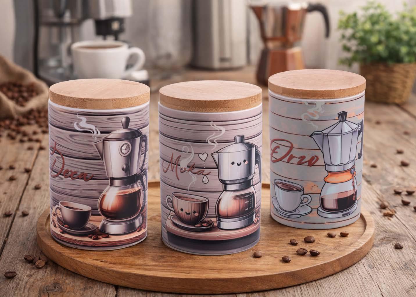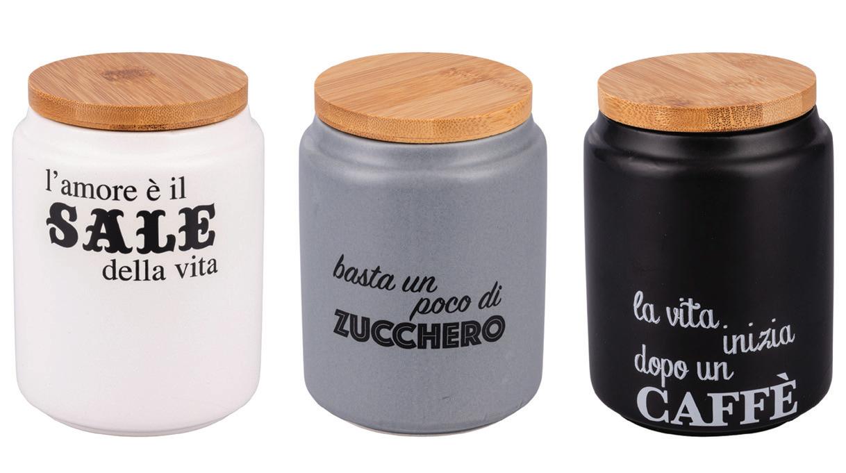 IDEE SET 3PCS JAR W/BAMBOO LID - CAFFE /ZUCCHERO/S