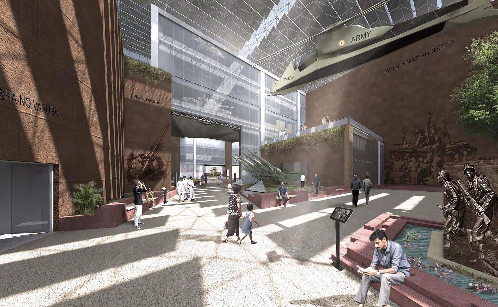 The project's design concept is rooted in the allegorical idea that public space and freedom are achieved through the sacrifices of servicemen and women for liberty. The aim is to engage the public within the plazas, surrounded by mature trees and the war museum's buildings. Figurative walls, sculptures, quotations, and weapon displays inspire visitors to embrace military traditions and understand the ethos of defending the country. These plazas, part of the war museum, remain accessible to the public even when the museum is closed. The surrounding cafes, art galleries, lecture halls & spaces serve as a true public space, situated prominently in the theater & art district along Copernicus Marg. Preserving trees planted by service officers and their families, the design honors their legacy in the Princess Park hostel barracks.