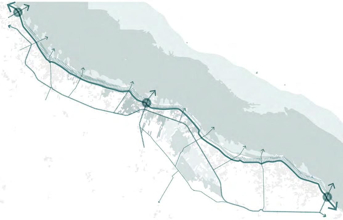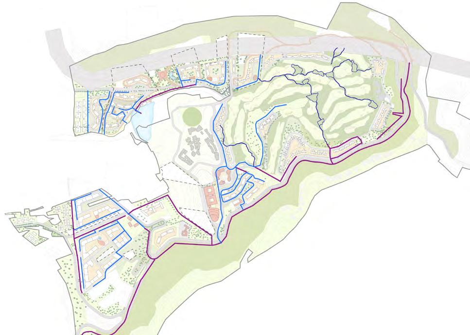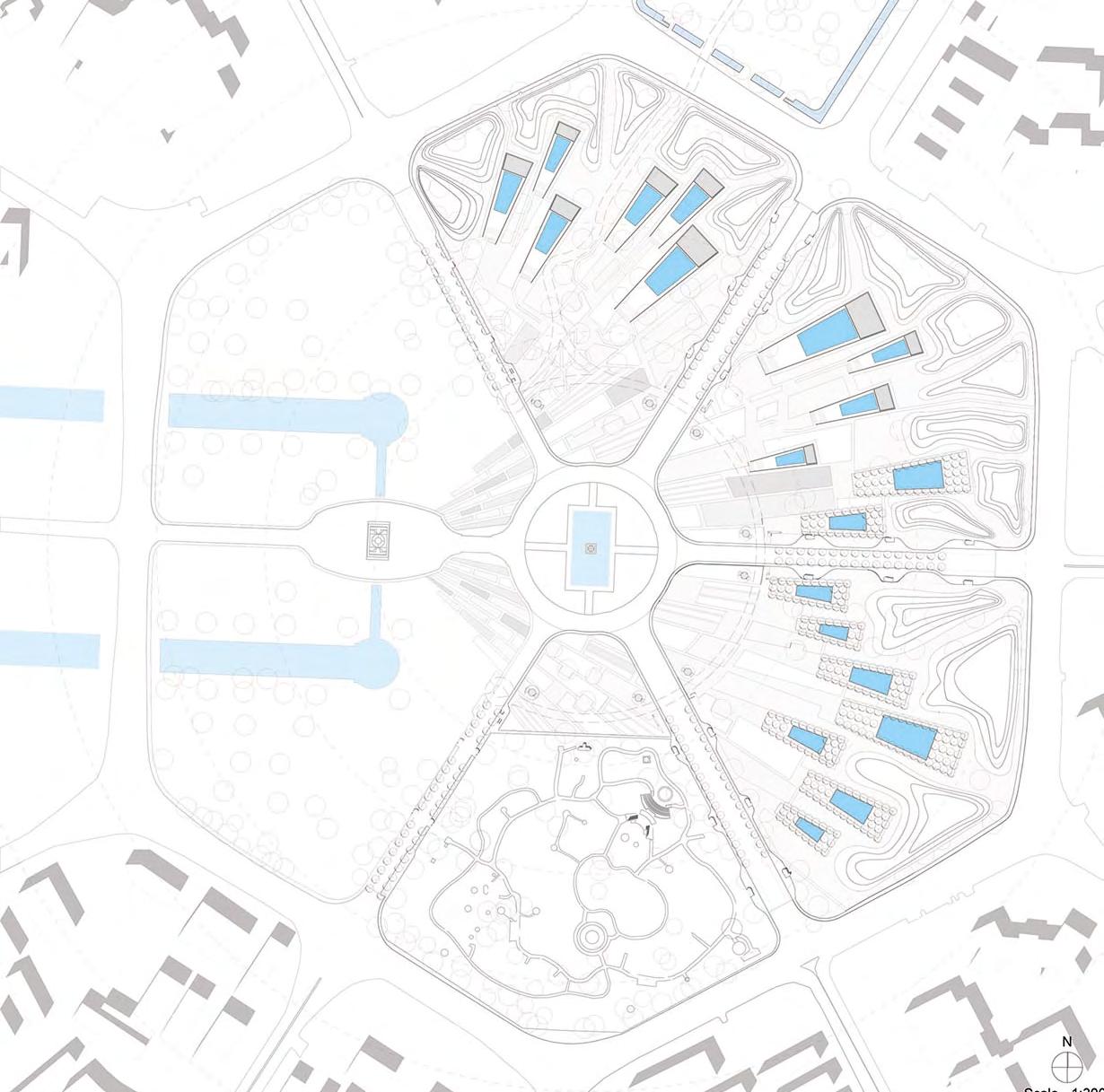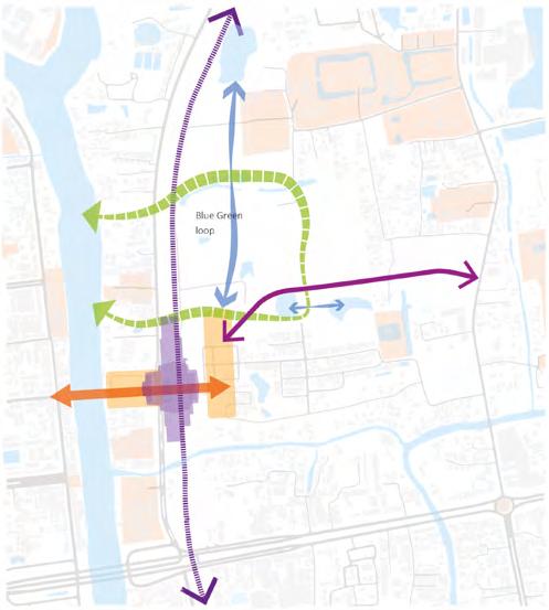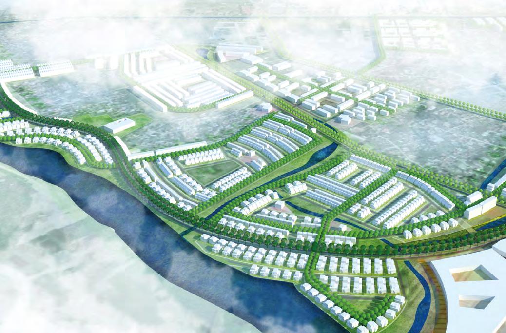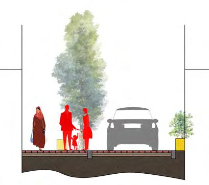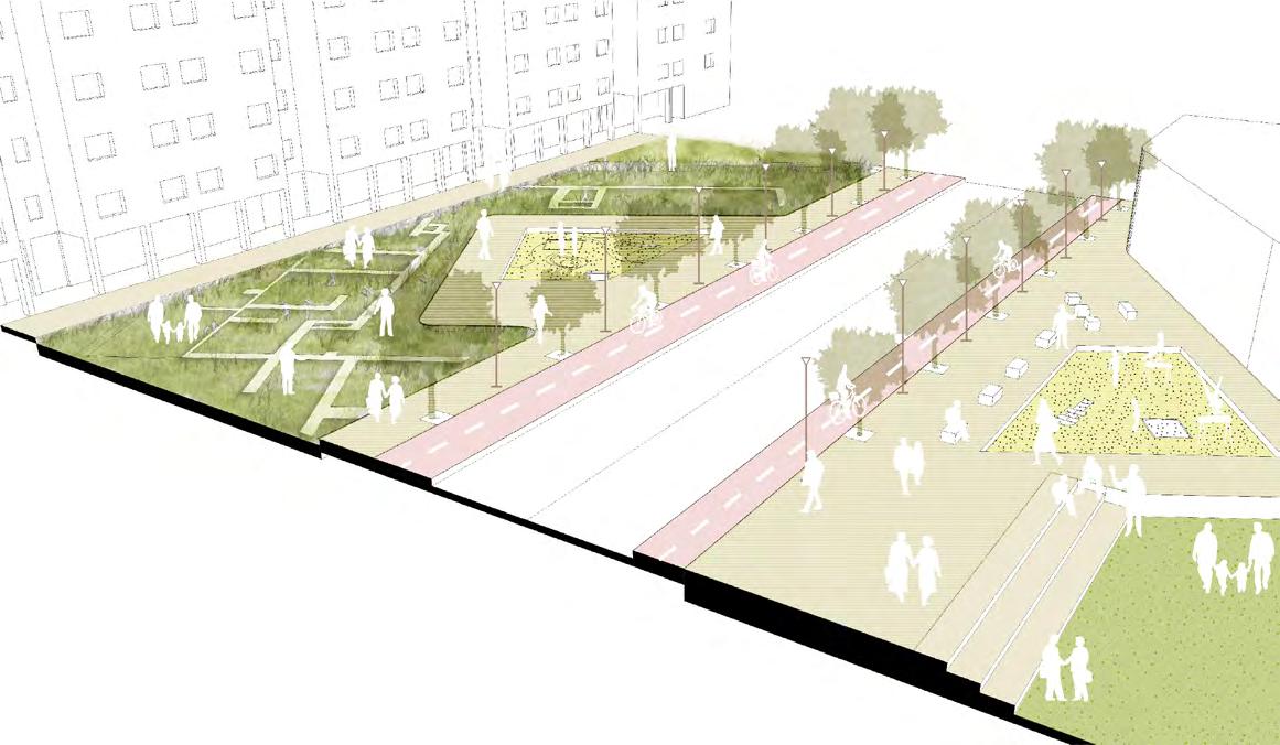 The pedestrianised stretch is connected with the small tanks in the communities and parks. This pedestrianised area is designed in proximity with the institutional zone.