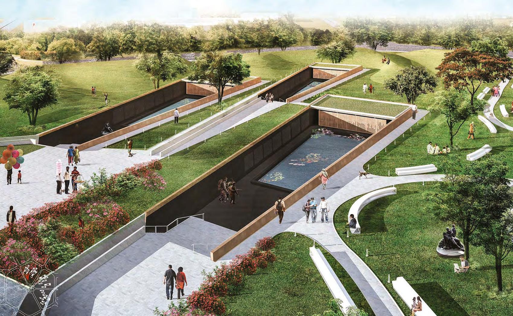 The project embodies the allegorical notion that public space & freedom are hard-won through countless sacrifices for liberty. The concept centers around a memorial & park that pay tribute to the profound losses incurred in securing these freedoms. Through the integration of figurative sculpture and personal narratives of servicemen, the project symbolizes the inseparable connection between public space, personal freedom, & soldiers' sacrifices. The park's design & the sculptures emphasize the enduring spirit of humanity, prioritizing it over glorifying war. By engaging the public with the park's leisurely atmosphere and thought-provoking elements, it aims to deepen their understanding of the nation's military history & the significance of bearing arms for the country.