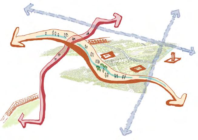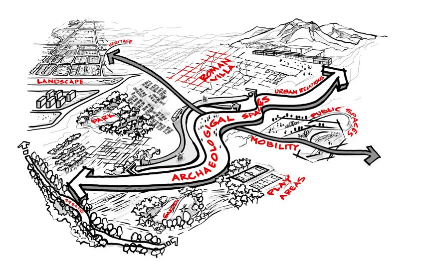 The Centocelle Urban Radura project integrates a natural landscape into eastern Rome, bridging fragments of the past with the present and uniting the park and the city. Cycling along themed Heritage Trails offers insight into the original cultural context of fragmented ruins. Reclaiming heritage sites from a military base and removing fences improves accessibility to the archaeological sites. Planting forests and wetlands within populated areas strengthens the connection between humans and nature. This project not only enhances biodiversity but also empowers the community and revitalizes the region's identity. By reconnecting villas, mausoleums, and aqueducts along the invisible ancient Roman road, the project evokes the past through architectural design, achieving a harmonious balance between past and present.