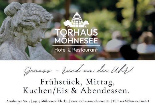 Die Wirtschafts- und Tourismus GmbH Möhnesee ist ausschließlich Herausgeber dieser Broschüre und in der Regel nicht Anbieter der darin aufgeführten Angebote. Im Falle einer Buchung bzw. der Inanspruchnahme der angebotenen Leistungen werden vertragliche Beziehungen ausschließlich zum jeweiligen Anbieter begründet. Die Angaben in diesem Verzeichnis beruhen auf den Angaben der Anbieter gegenüber der Wirtschafts- und Tourismus GmbH Möhnesee.