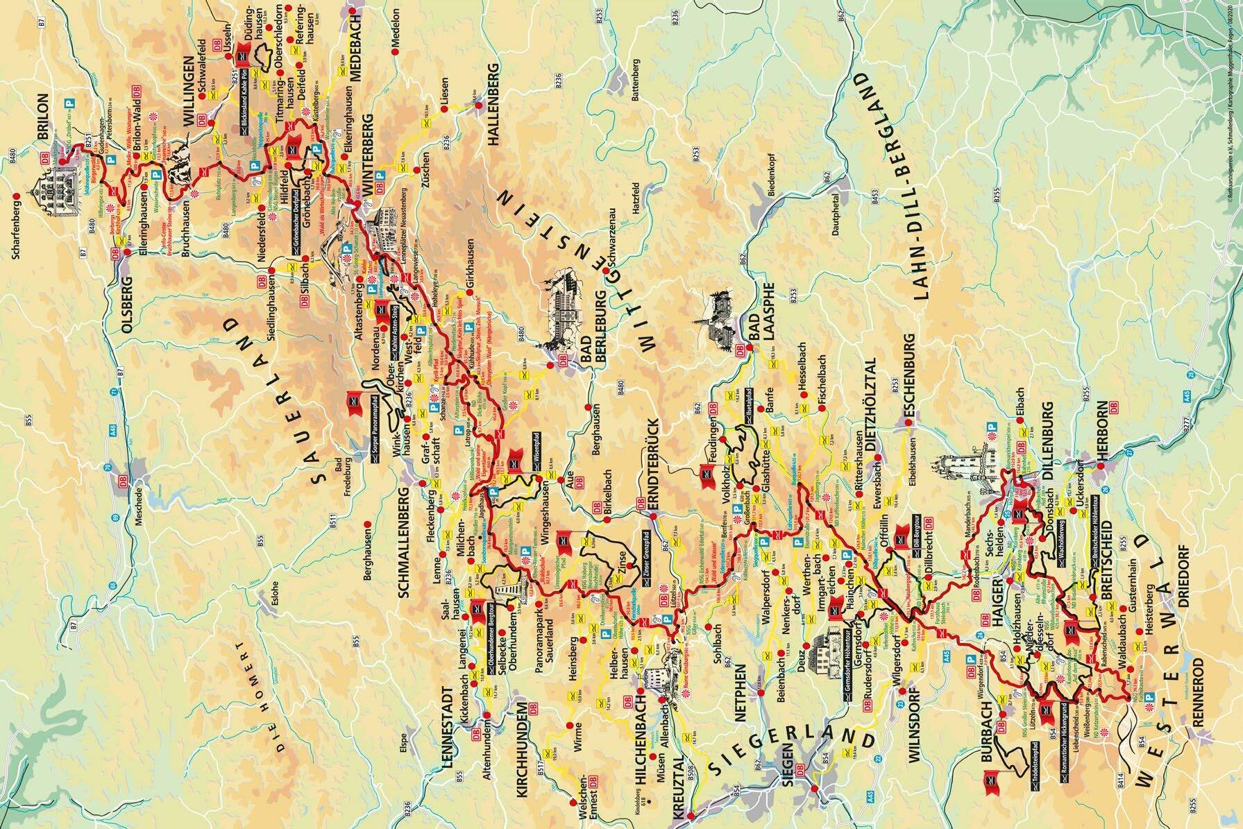 Rothaarsteig Übersichtskarte Auf einen Blick