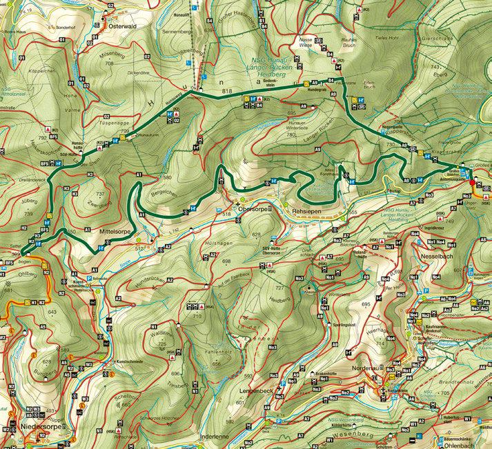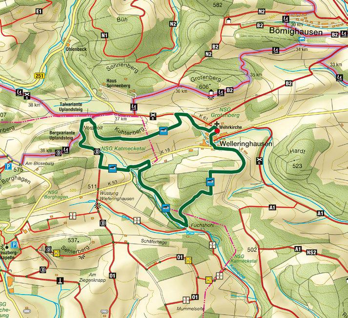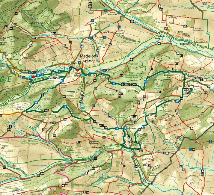 cke sind zwei Wegverläufe möglich. Die westliche Wegschleife führt über den Vildischen Grund bis zum Forsthaus Kaltenscheid (9 Stationen, 7 Kilometer). Der östliche Abschnitt, vorbei an der renaturierten Orke, ist 2,5 Kilometer lang (4 Stationen). Wissenswertes zu den einzelnen Stationen finden Sie unter www.mede-bucht-spiel.de