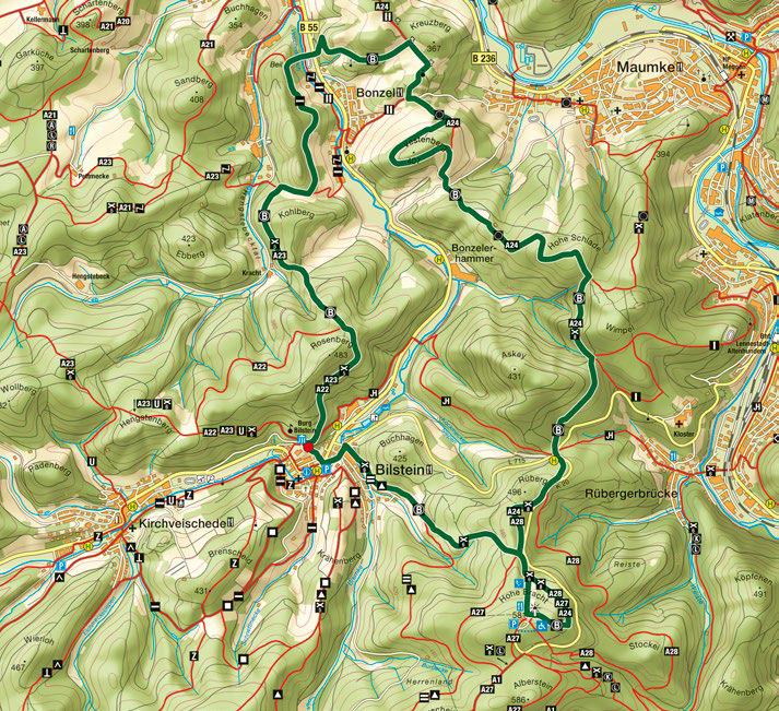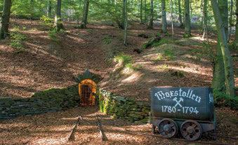 damals ziegelrot gefärbt. Heute stoßen Wandernde am von Buchen bewachsenen Eisenberg auf viele Relikte aus dieser Zeit. Info-Tafeln am Wegesrand liefern spannende Details zur Olsberger Geschichte. Und der Philippstollen hat von April bis Oktober sogar für Besichtigungen geöffnet. n