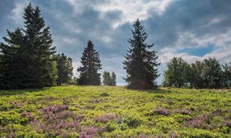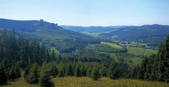 des Briloner Kammweges entlang. Die Natur zeigt sich in all ihren Spielarten: Nadelwälder wechseln sich mit alten Buchenbeständen ab, und immer wieder tun sich wunderschöne Aussichten auf die westfälische und hessische