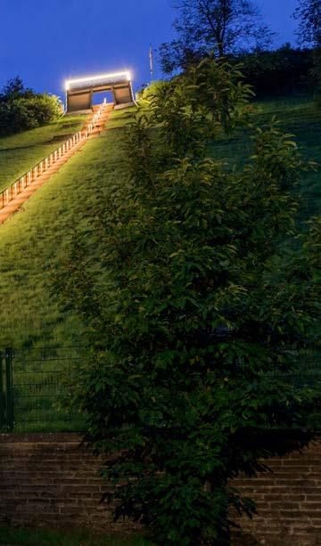 Als je aan de voet van de Hennedam staat, moet je precies 333 treden omhoog op de Himmelstreppe. Deze brengt je naar de top van de Hennedam aan de zuidelijke rand van Meschede. Vanaf hier heb je een prachtig uitzicht over het meer, waarover het stijlvolle