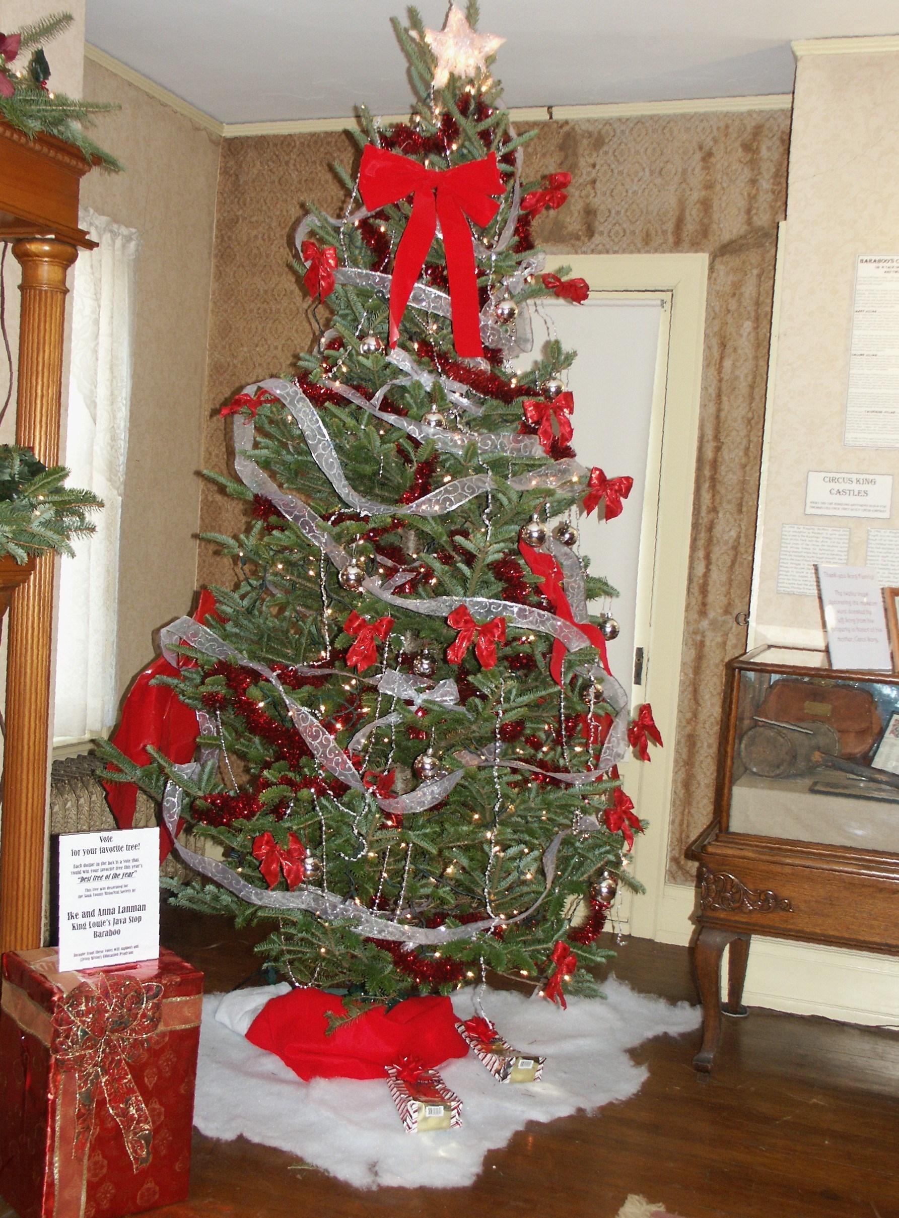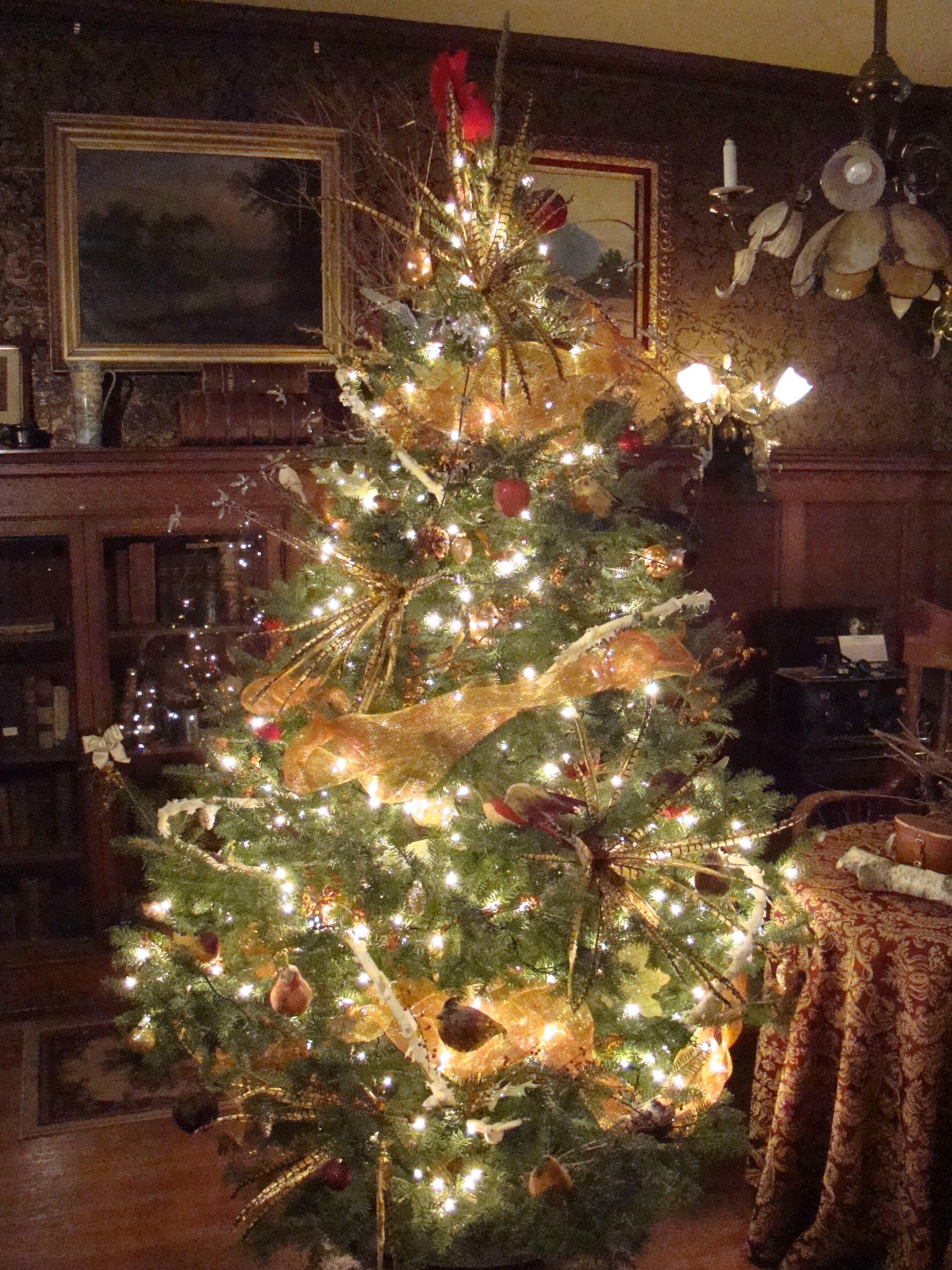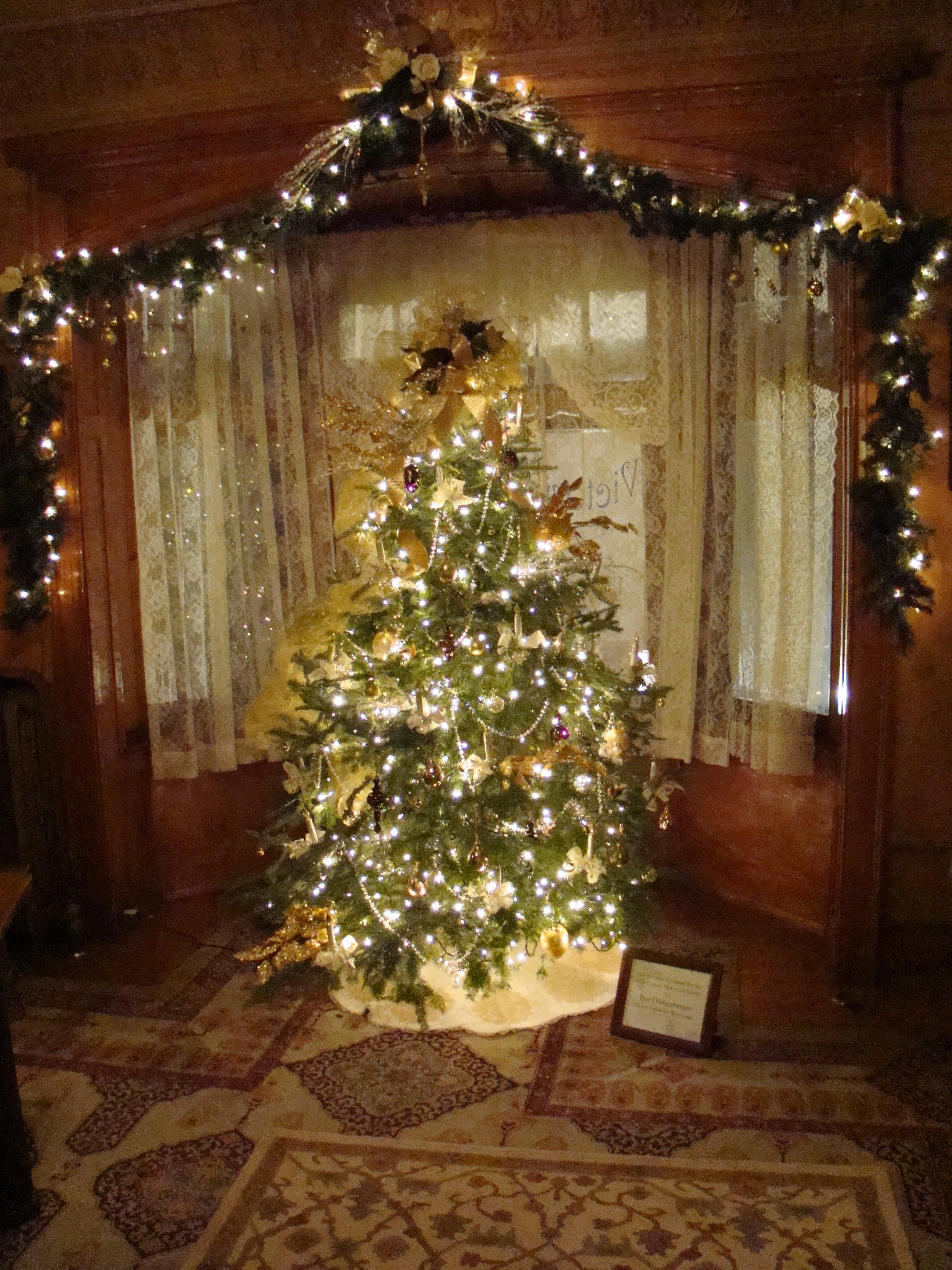 The tree at the left, is the first Christmas Tree which was displayed at the Van Orden Mansion in the New Millennium. Located in the entryway, it was a modest beginning and a portend of things to come during the following years.