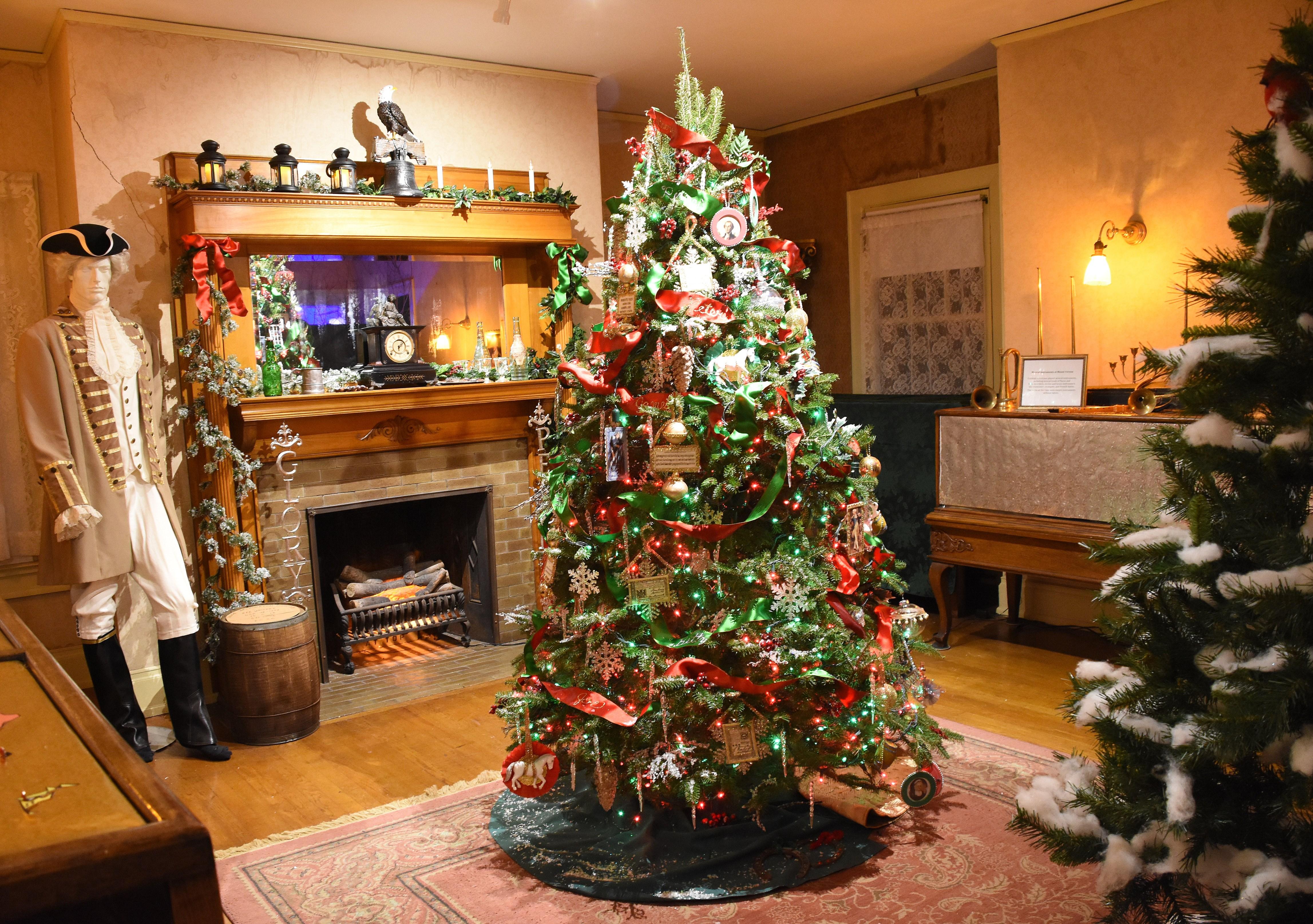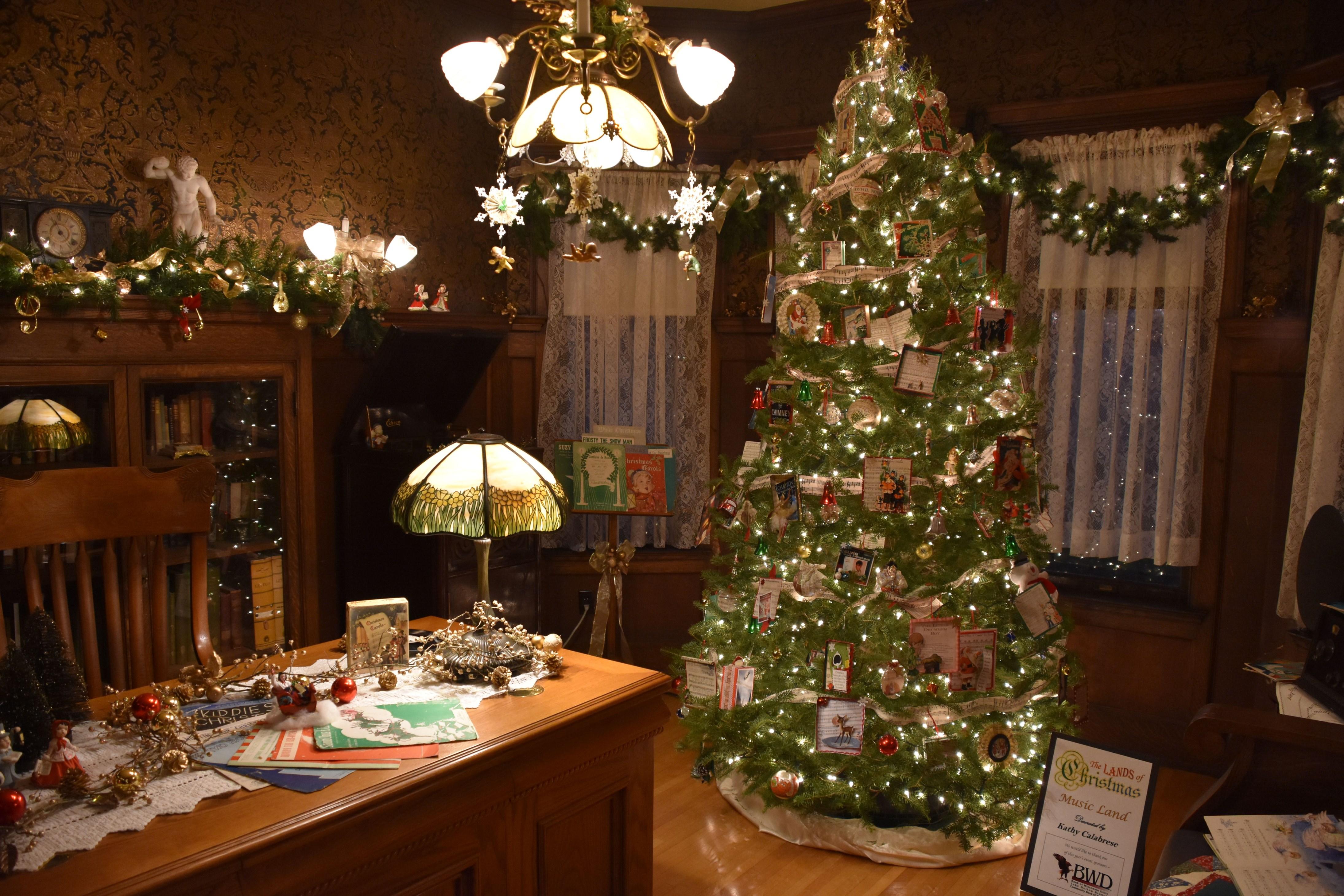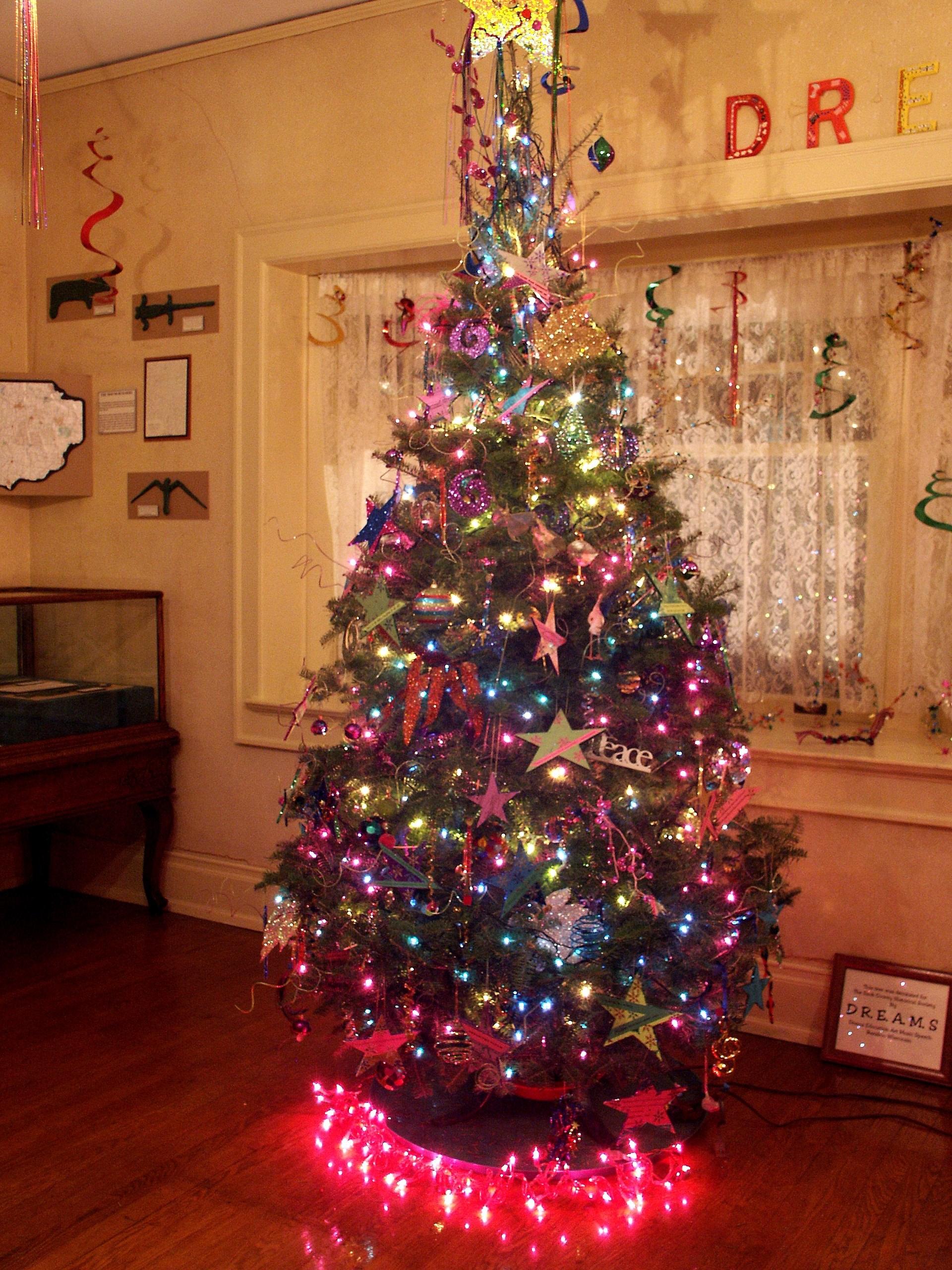 The tree at the left, is the first Christmas Tree which was displayed at the Van Orden Mansion in the New Millennium. Located in the entryway, it was a modest beginning and a portend of things to come during the following years.