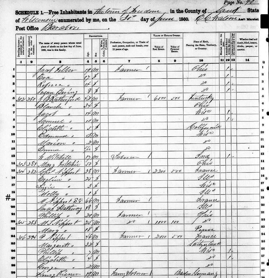 1850 U.S. Census, Township of Berry, Dane County, Wisconsin