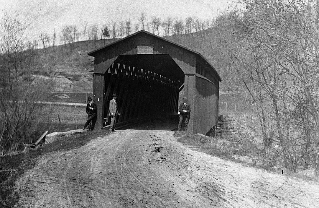 In later years after autos came to be more numerous, the side boards were taken off to let the approaching car know if there was another vehicle inside the bridge as it was a one-way bridge.”