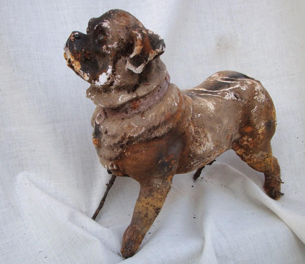 Also included in the treasurers was a broken BB gun, a small two-legged plaster bulldog, an acetylene lantern possibly used as a bicycle light. There were countless rusted metal cans which had not survived the test of time. There was also a six-inch cylindrical battery which would have been used to power an early crank telephone. A rusted 1915 license plate dated that layer of debris.