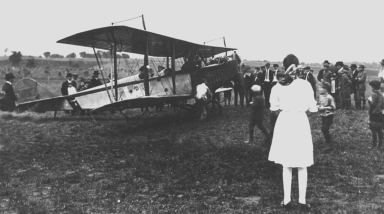 Aeroplane flying over the village of Plane.