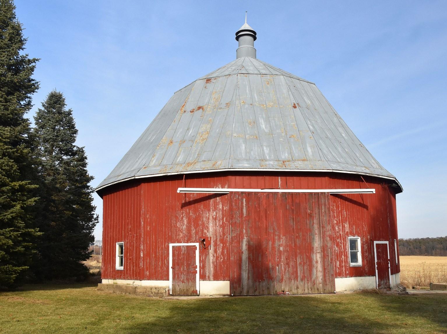 The covered Butterfield bridge on Highway 33 between Baraboo and Portage the last one in Sauk County was eventually replaced by a more modern iron truss bridge in 1934 when the highway was straightened. Previous to that, travelers approaching the old covered bridge had to negotiate a sharp curve just before entering, resulting in numerous accidents.