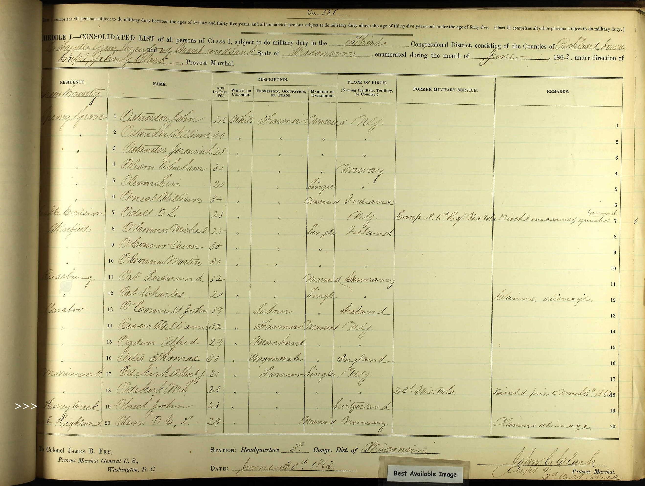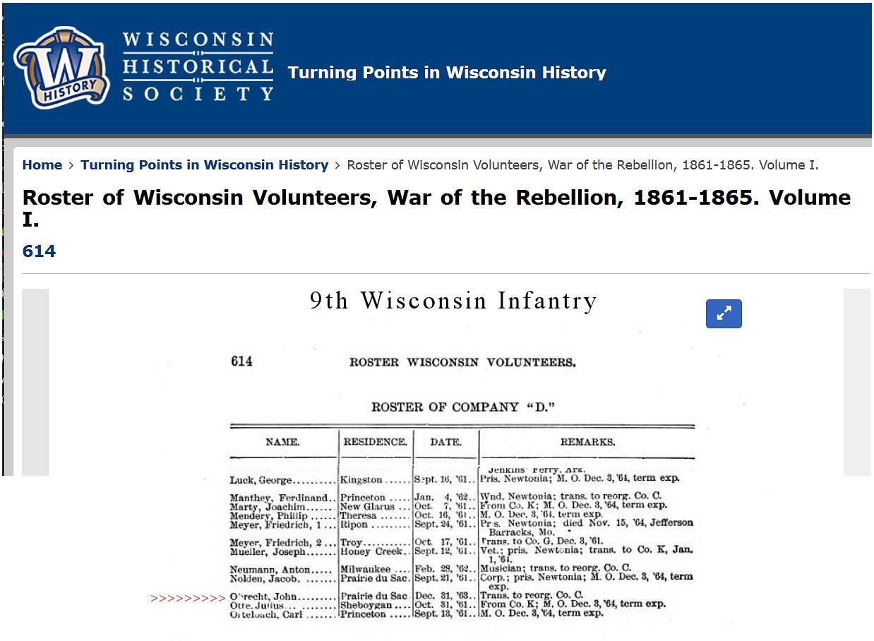 We begin the Civil War journey of Private John Obrecht on the following pages in January 1864, on the approximate date on which he would have become a member of the Wisconsin 9th Infantry, Company D.