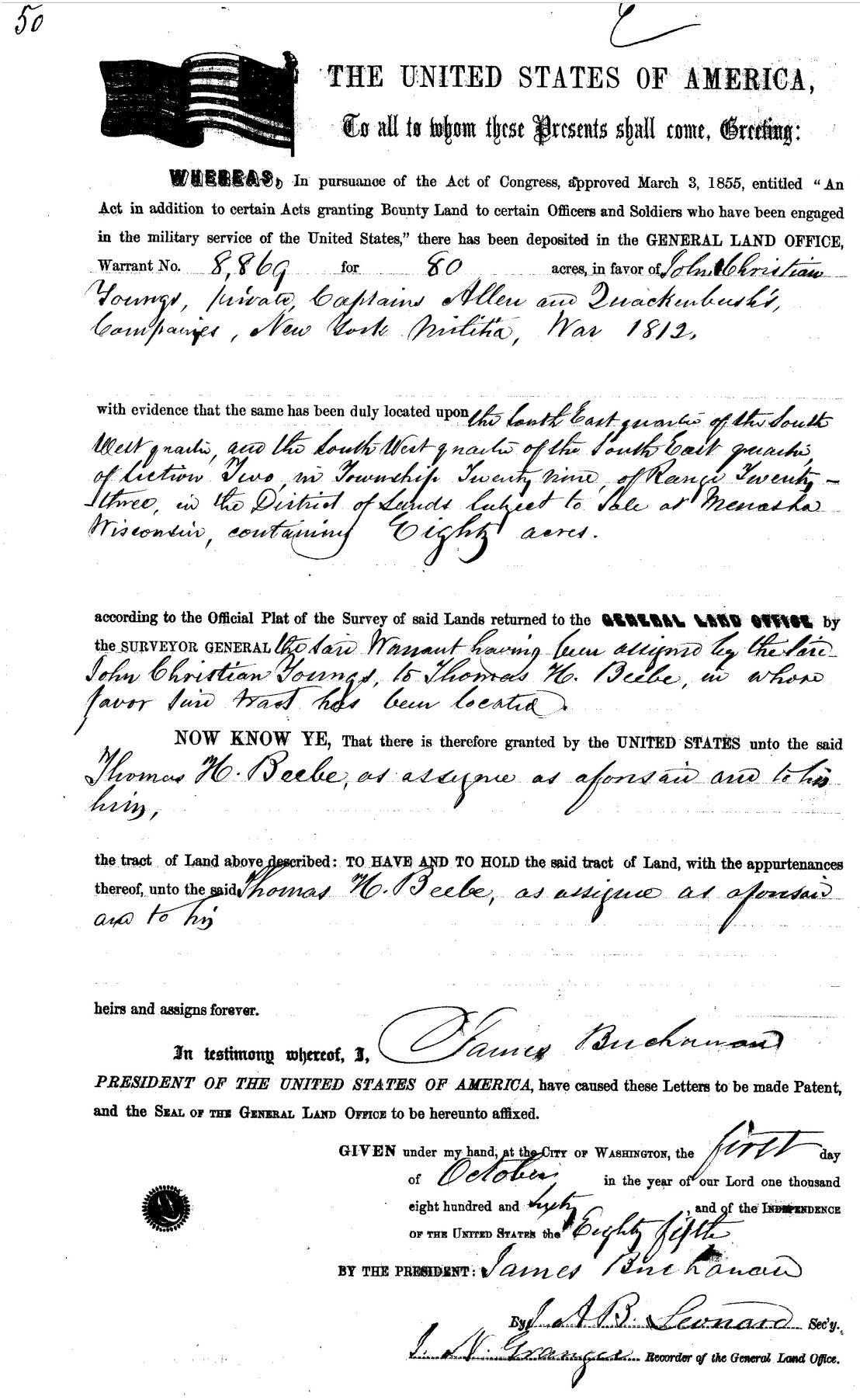 New York militiamen and volunteers who served during the War of 1812 became eligible to receive reimbursement for supplies, clothing, and equipment furnished for the war effort by the Laws of 1818. It was not until 1857, however, that the State of New York created an administrative "board of commissioners," consisting of the Adjutant General and Inspector General, to examine and approve claims submitted by War of 1812 veterans, their widows, or other legal claimants. Legislation passed two years later amended the previous law, and authorized the board of commissioners to issue certificates to claimants stating "the amount which [the commissioners] shall have found to be due." Under the 1859 law, 17,228 claims were audited and approved, and an additional 44 claims were approved in 1872.5