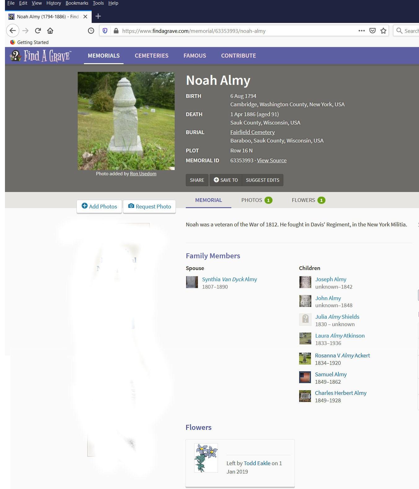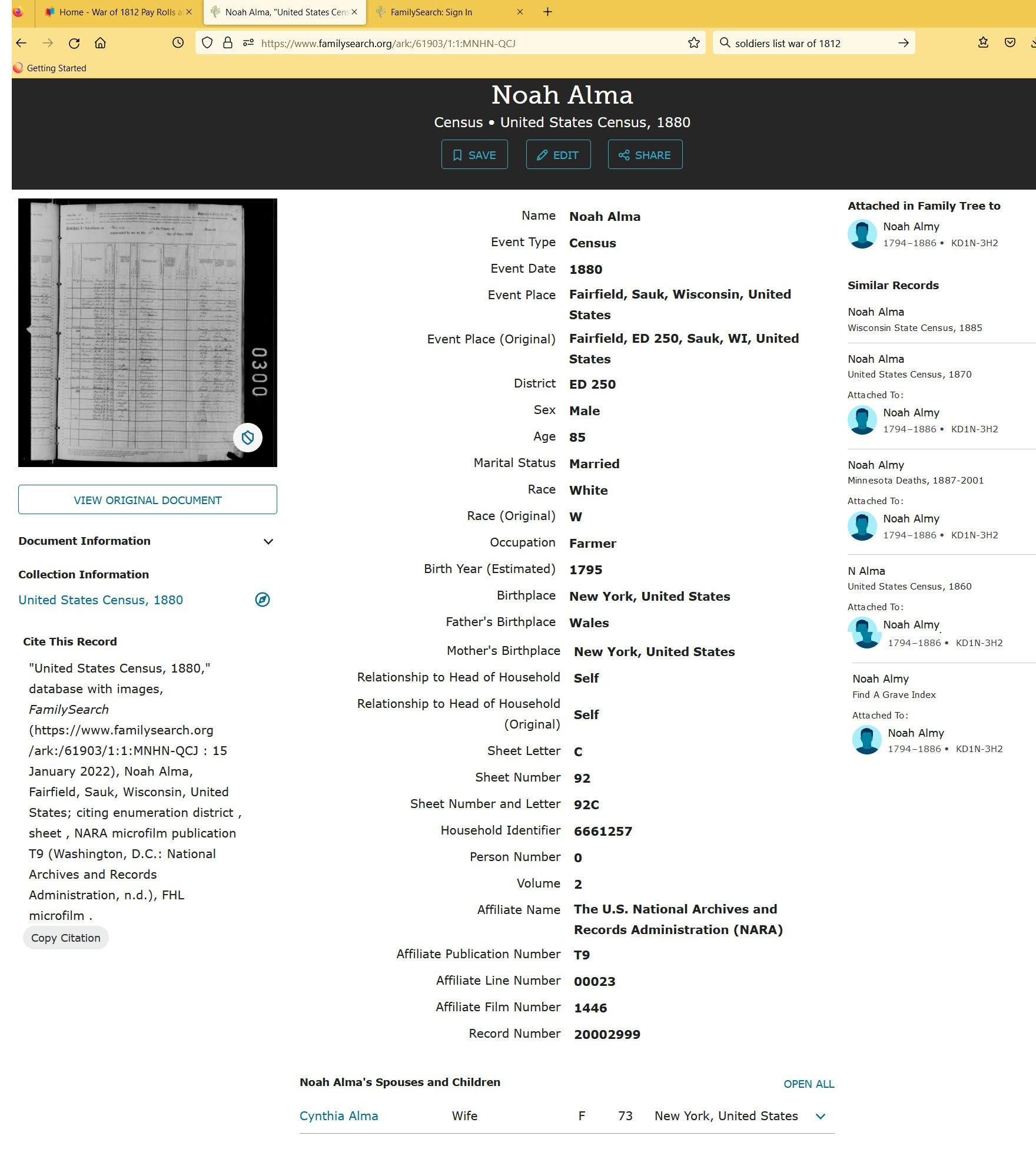 16 NoahAlmy 1794 1886 Wisconsin 1875 Census